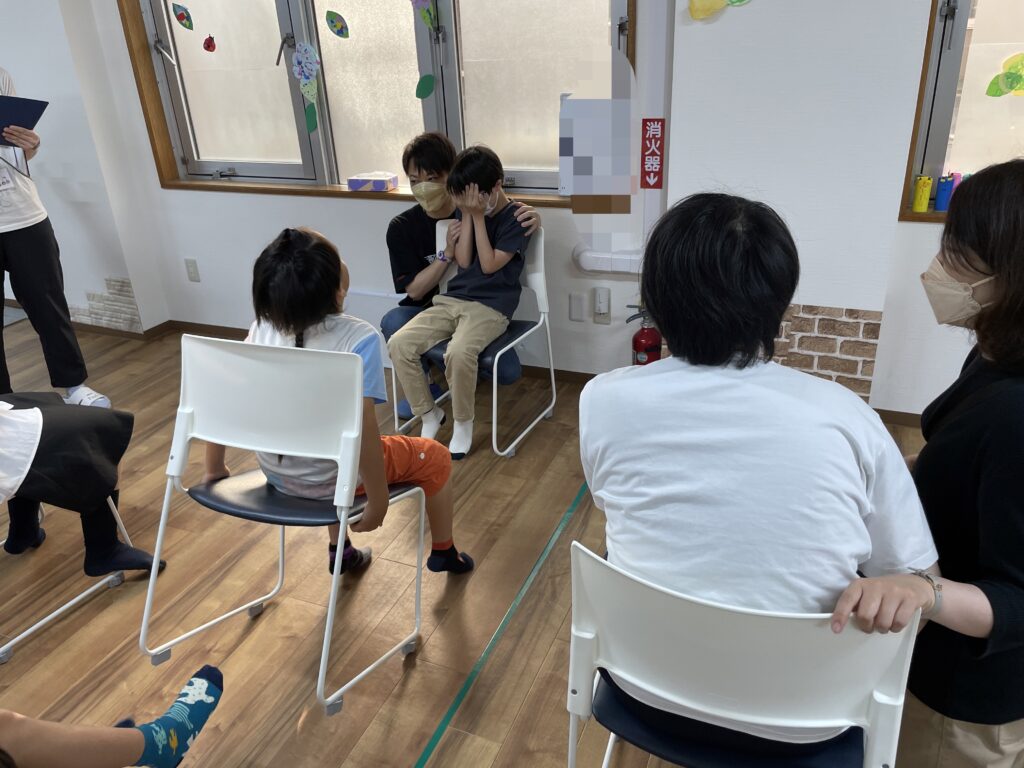 聞く役の子(1人)と、話す役の子(3人)に分かれます。