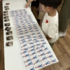 様々な線の上に何枚シールが貼れるか?を予想し、実際に貼ってみて長さの感覚を養っています。