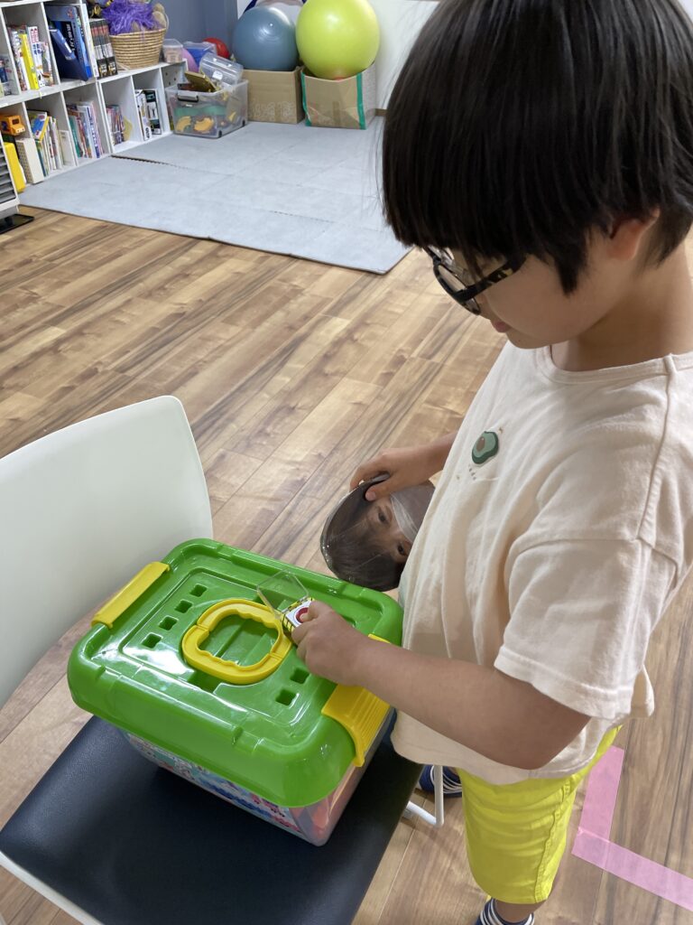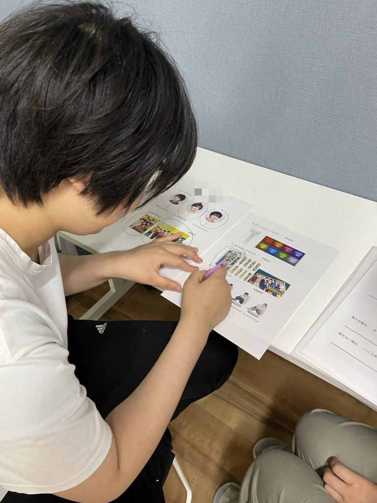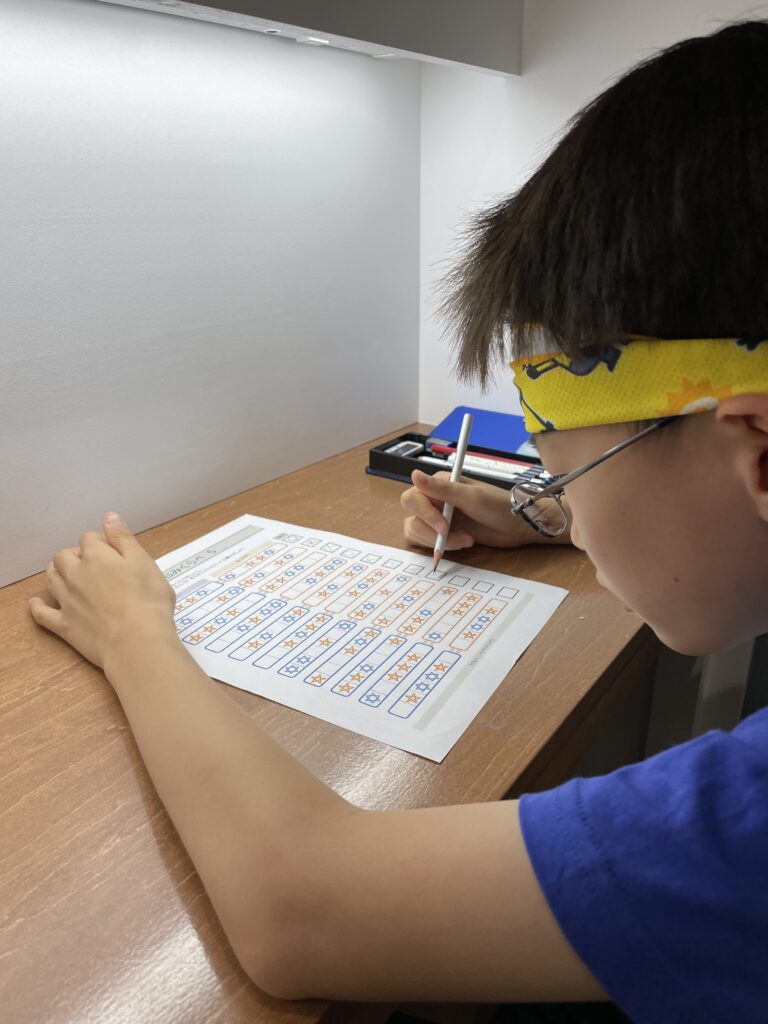 ビジョントレーニングと助詞の使い分けの勉強をしている子もいます。