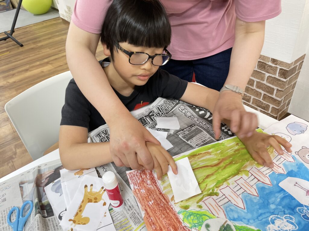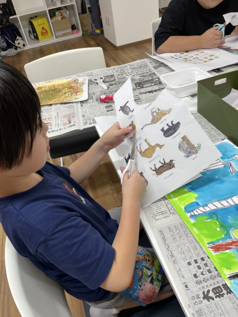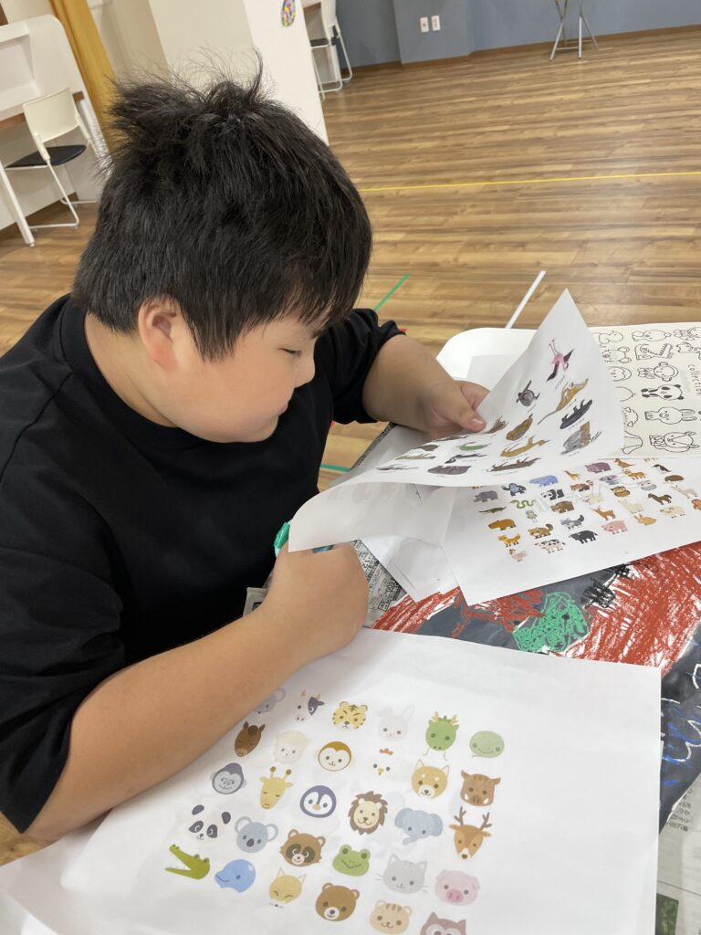 絵が苦手な子には動物の写真やイラストを切り抜いて貼るかを選んでもらいました。