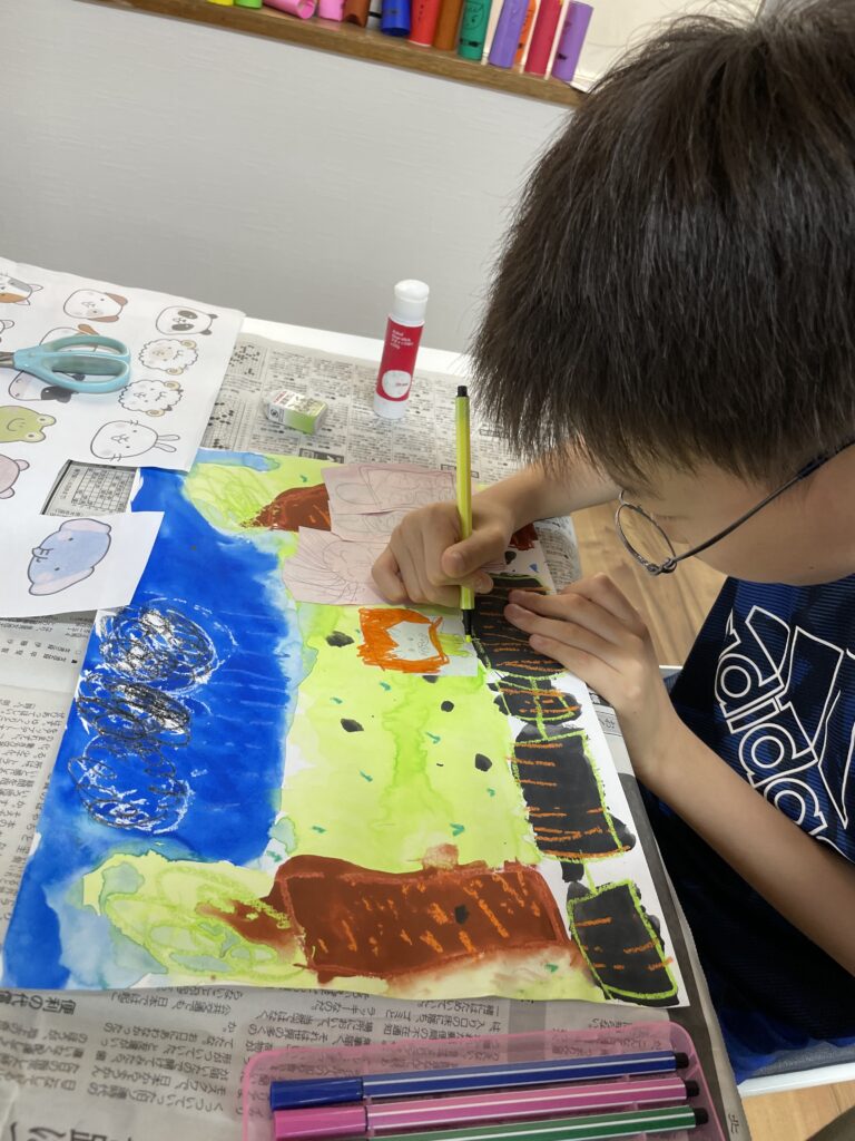 中には本物とは違う個性豊かな色の動物も描いている子もいました。ユニコーンなどの空想の生き物を考えた子もいました。