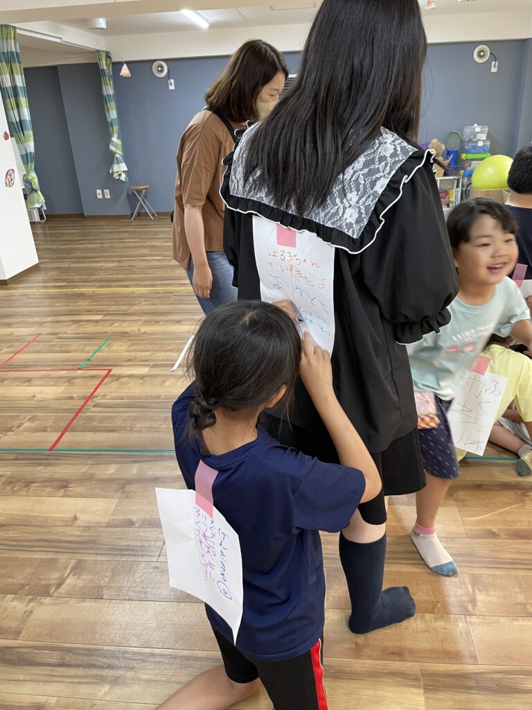 それを繰り返し、最後に背中に貼ってある紙をとり、どんなことを褒めてくれたのか?を読みました!