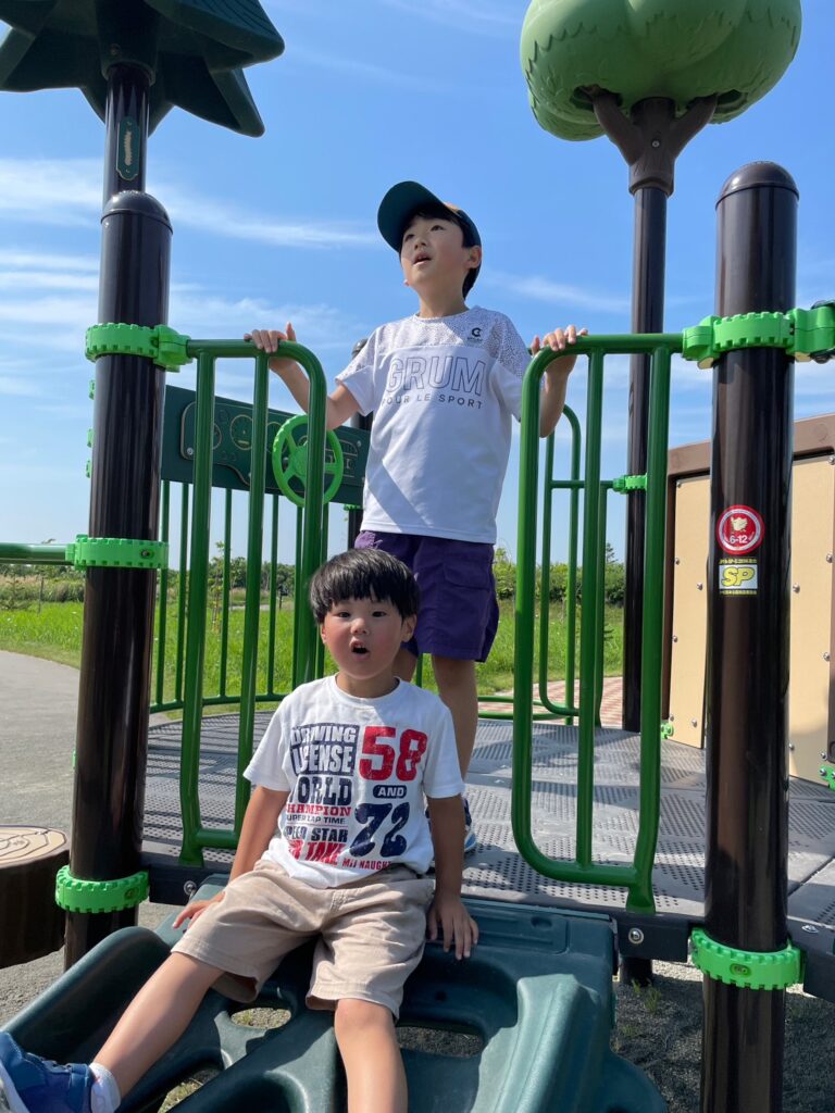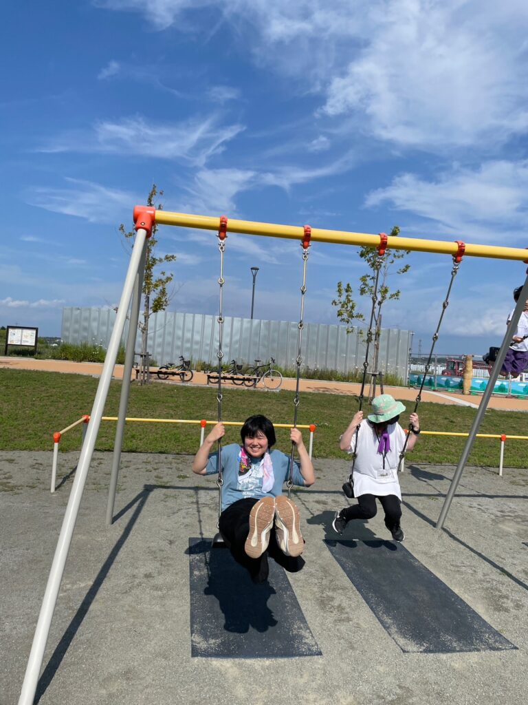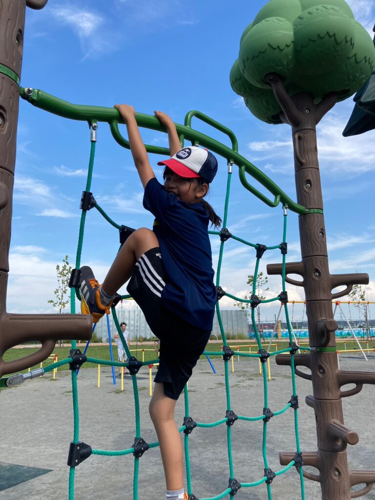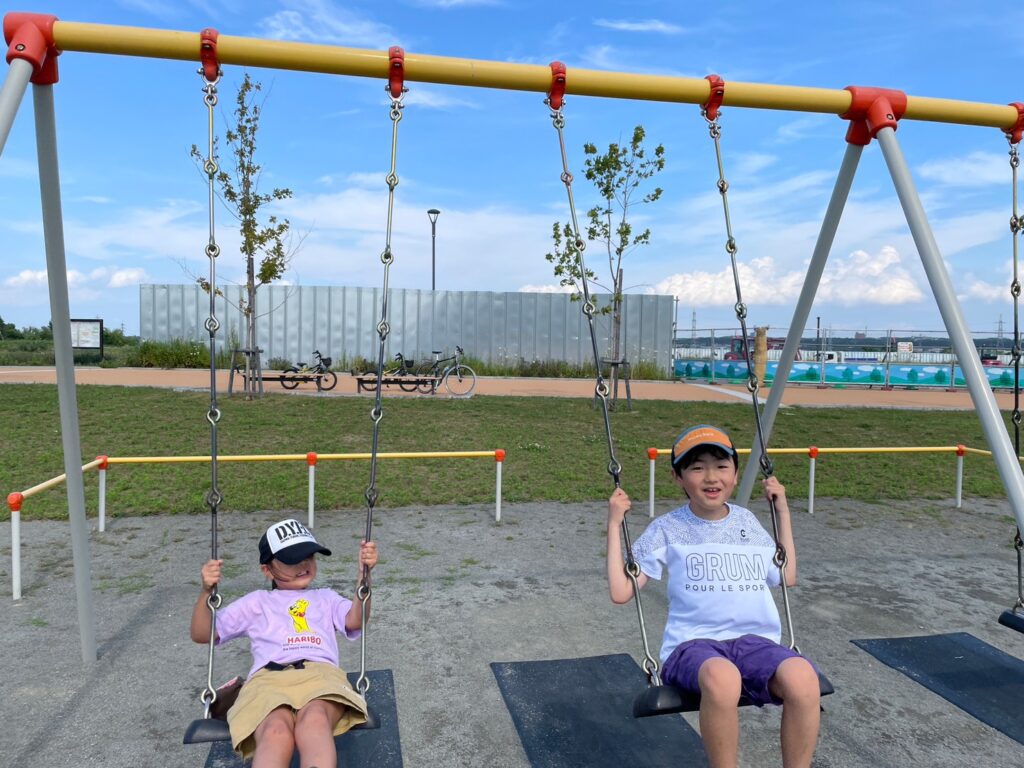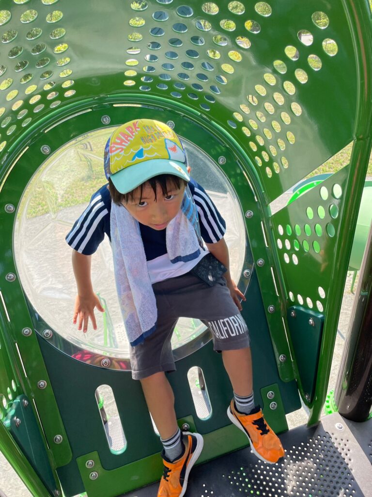テントの中でちょっと休憩しつつ、滑り台やブランコで遊んでいました😀