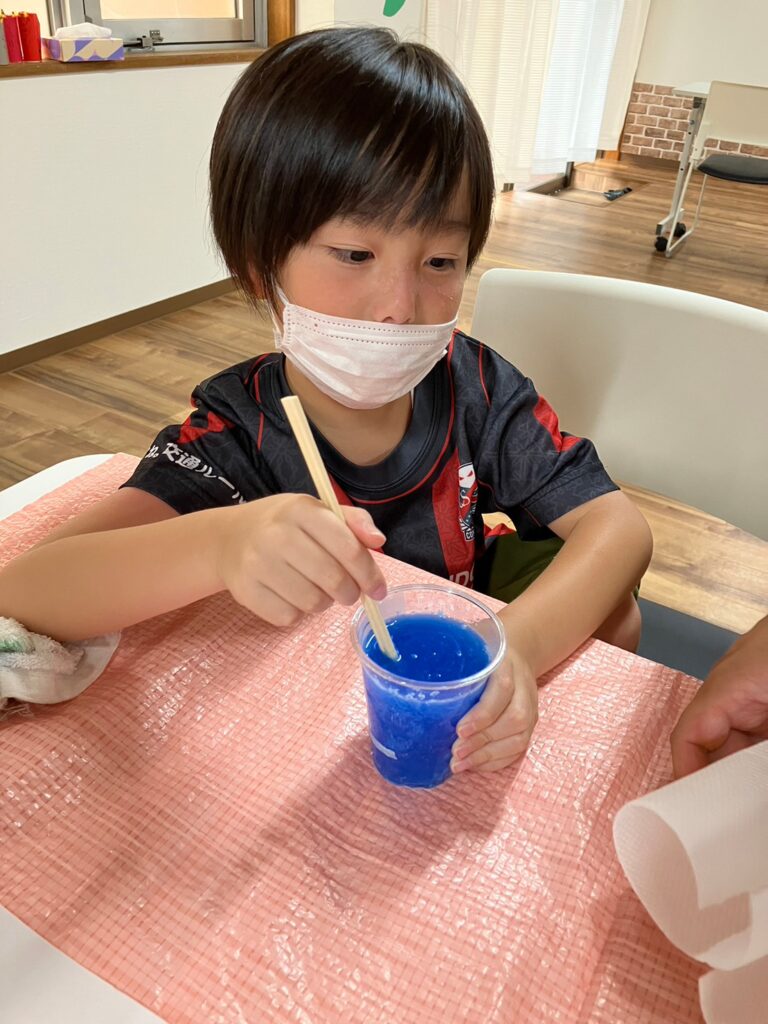 絵の具も混ぜて好きな色のスーパーボールを作っていました!