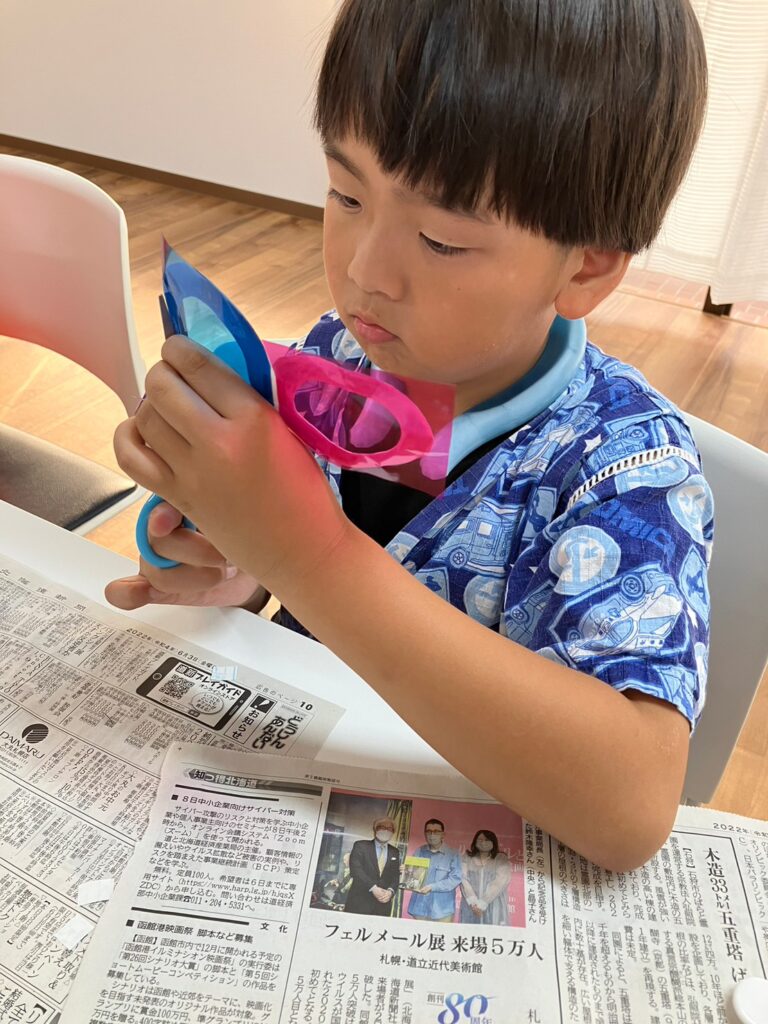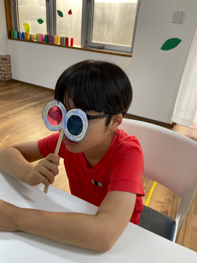 眼鏡のフレームは子ども達の好きなように色や絵を描いてもらいました!