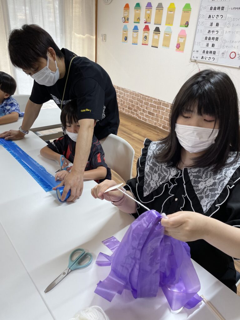 すずらんテープを裂くことにはまっていた子も…それぞれの楽しみ方をしていました!