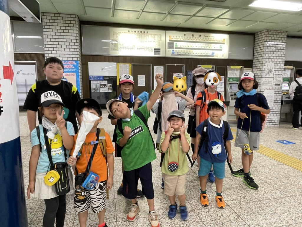 到着した子どもたちと一緒に荷物を確認し、出発前に公共交通機関でのルールを確認しました。