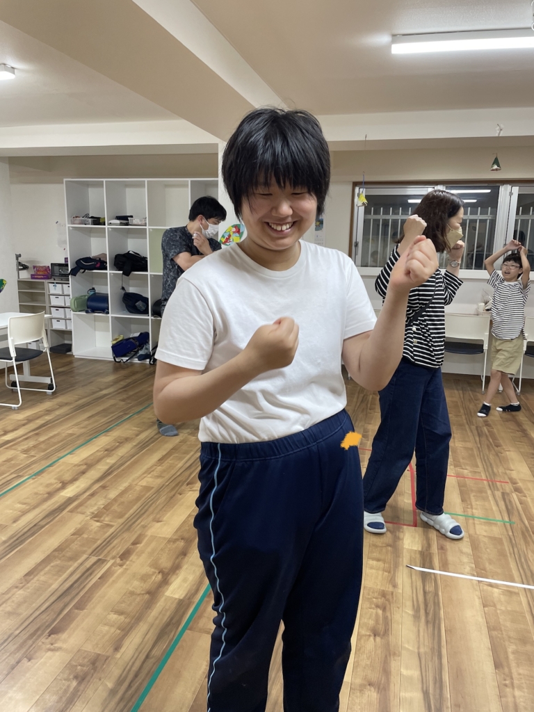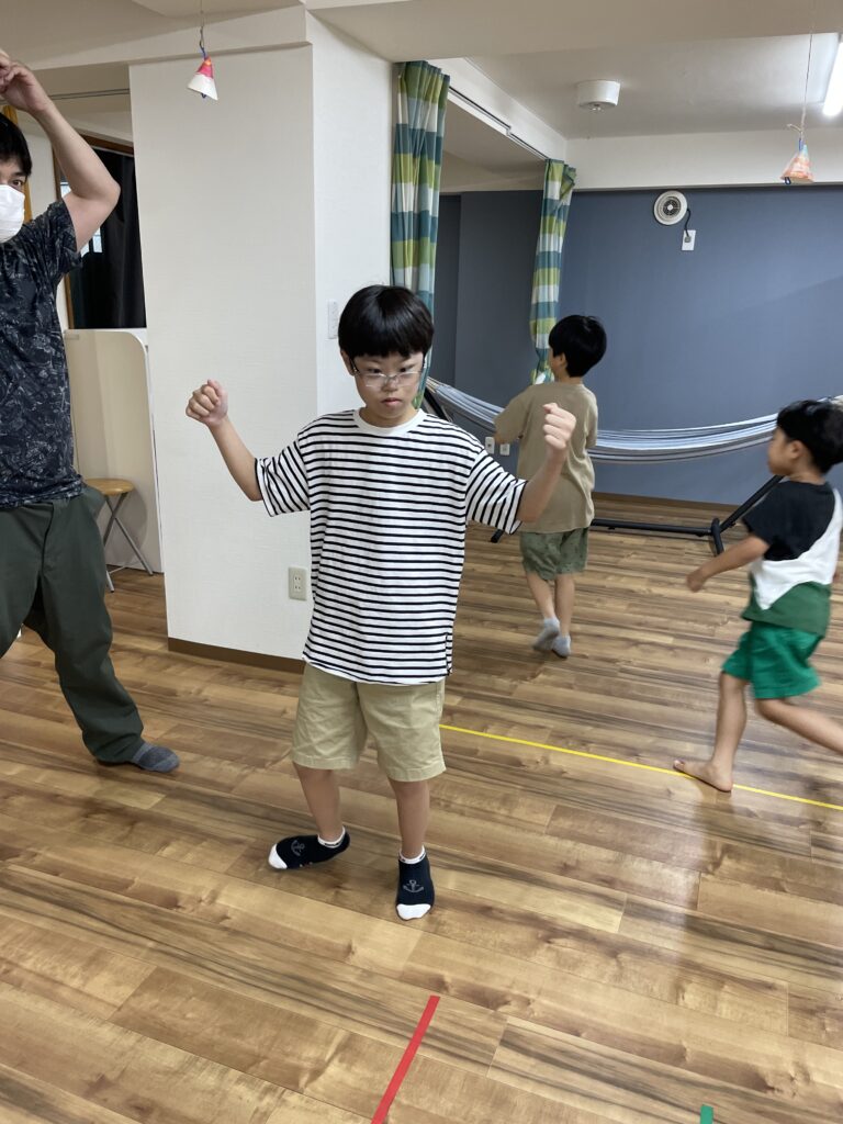 ジャンケンのように決められた3つのポーズの中からどれか一つを選んで、リーダーの子のポーズと合わせられるかな?といったゲームです。