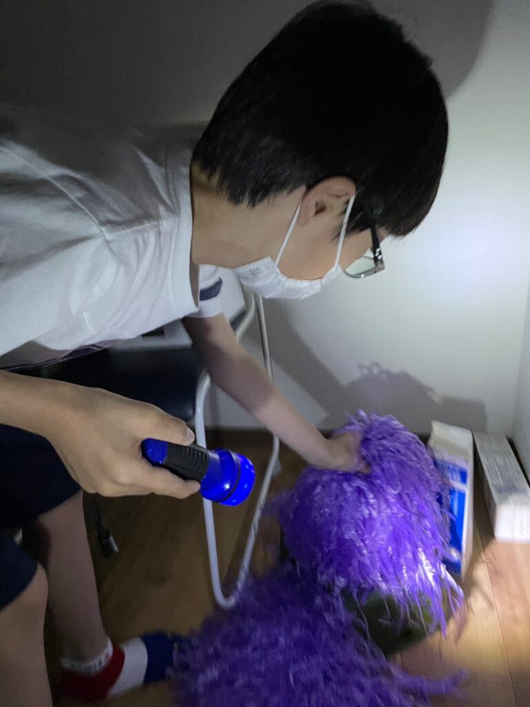 たまみずきの1つの部屋を真っ暗にし、懐中電灯のみで隠された宝を探します!