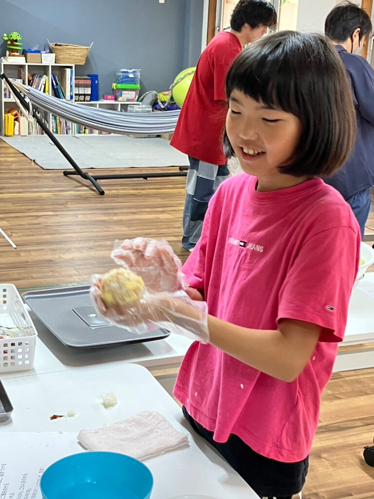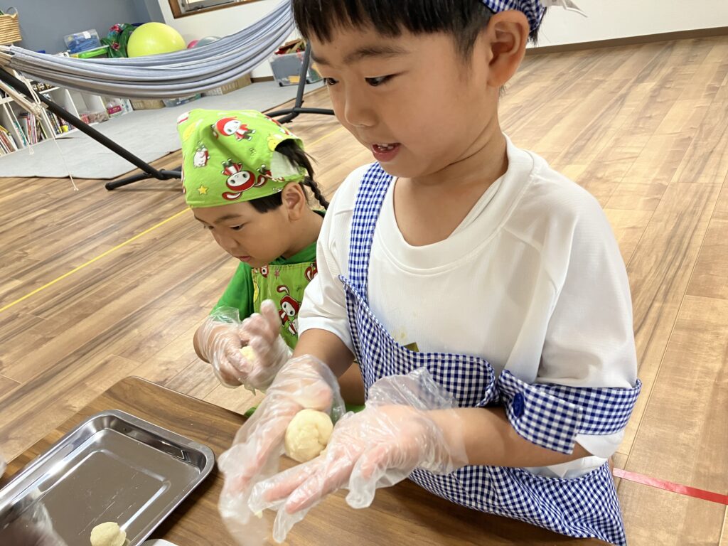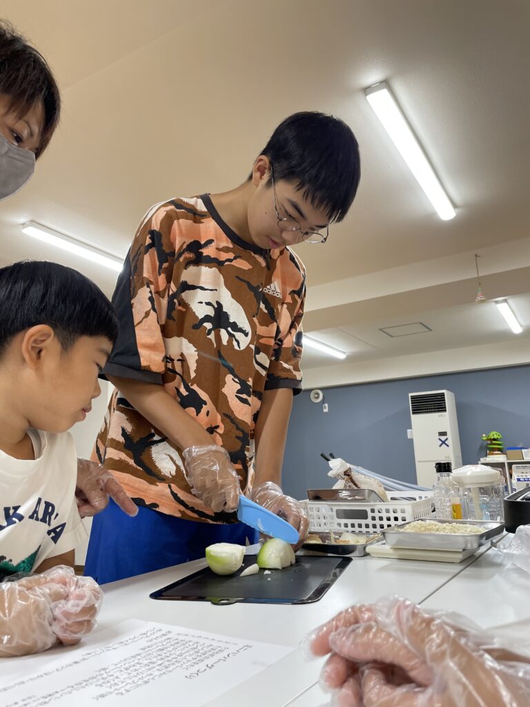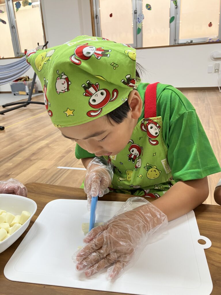 勉強が終わったら、手を洗って、エプロンをつけてクッキングの開始です✨