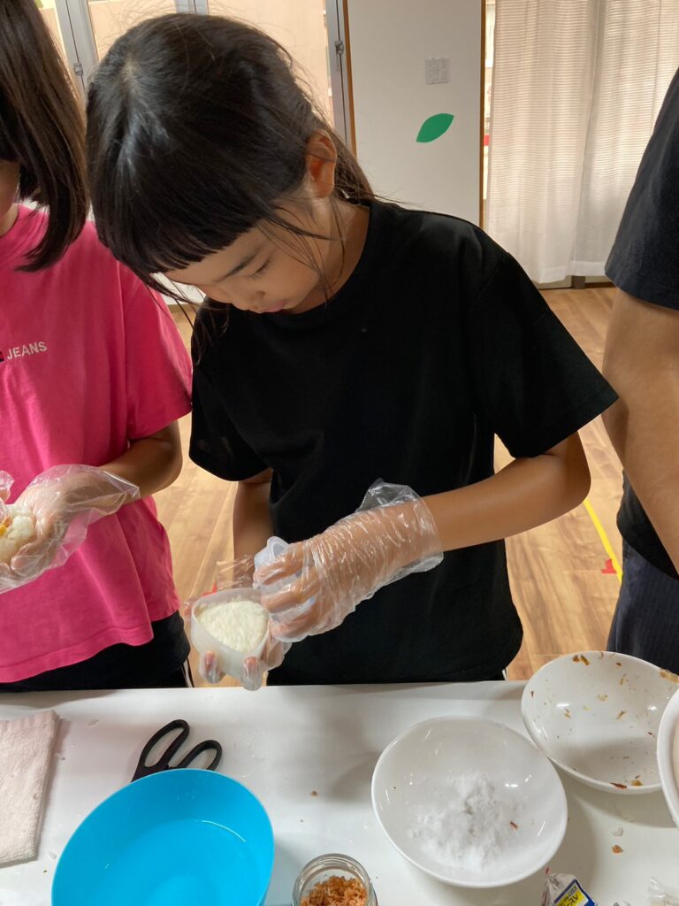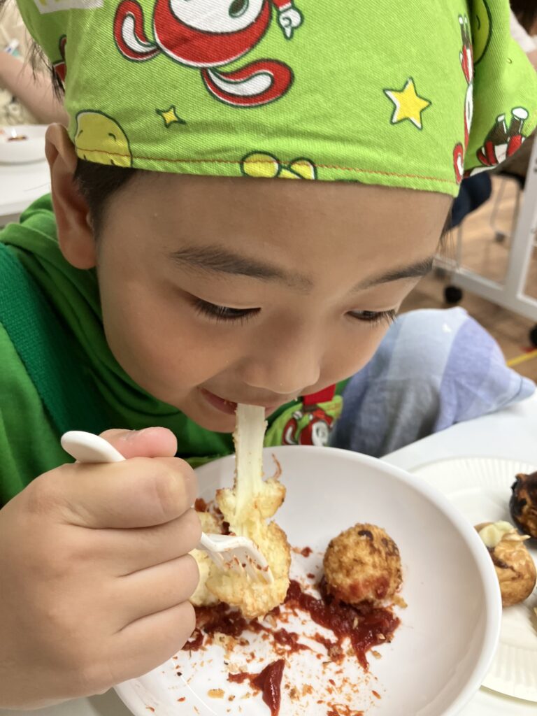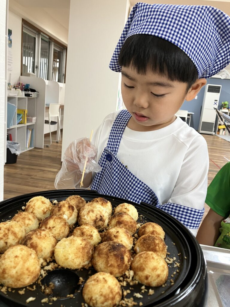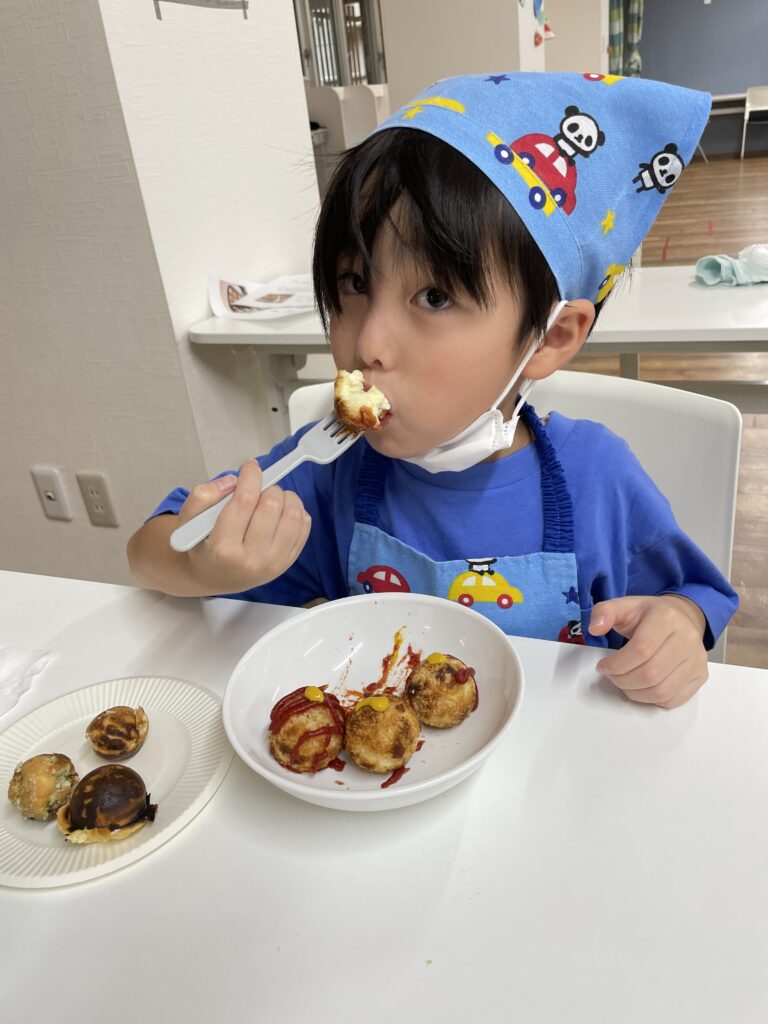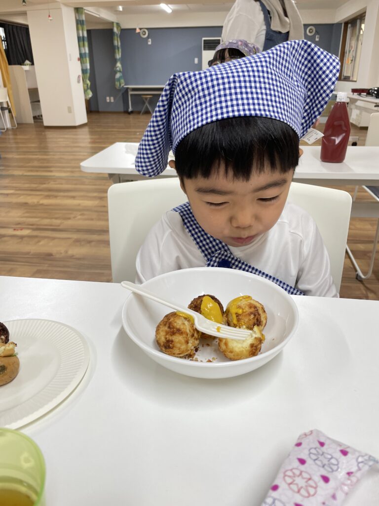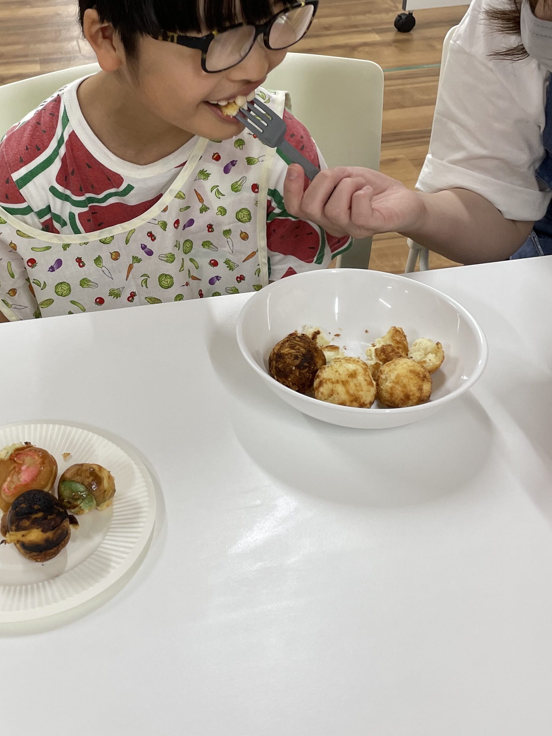 ホットケーキミックスに牛乳を入れて、たこやき器で焼くときに具材を入れていきます💚