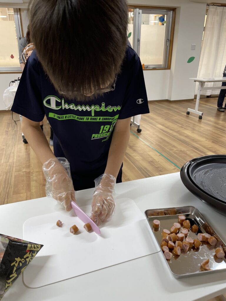 こちらのチームは板チョコを割ったり、マシュマロやウィンナーをカットしたりと最初の準備が多めです。