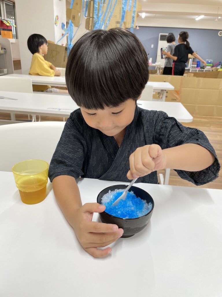 先週作った海の家を組み立てて、運試しゲーム大会とかき氷ショップと、