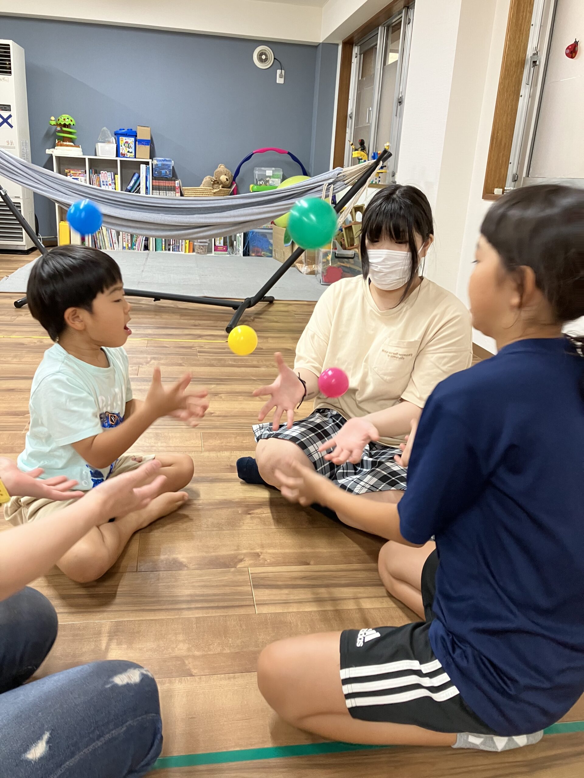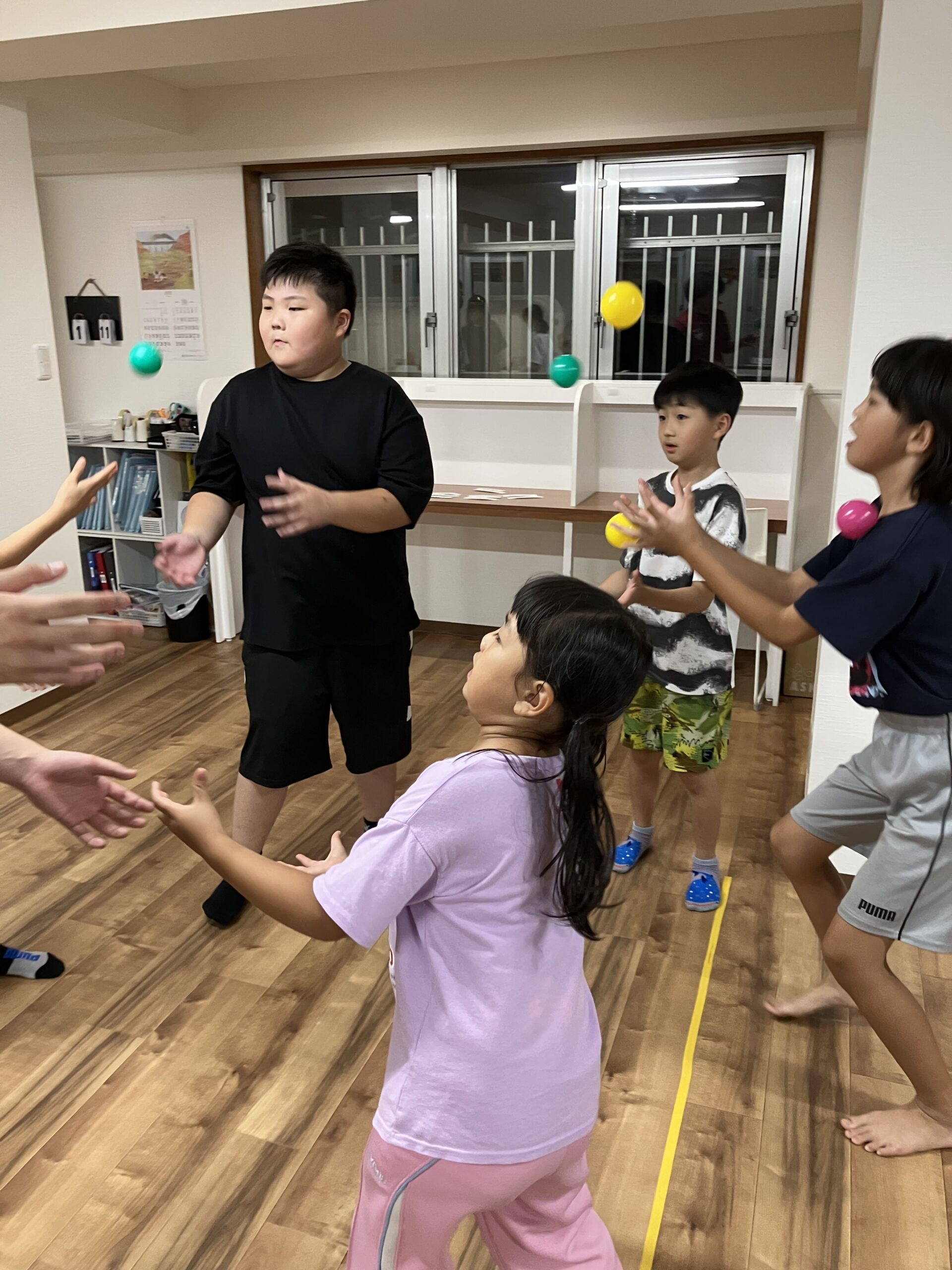 なかなか成功は出来なかったけれど、声を合わせたり、難しいお友だちに、隣の子のボールの色をよく見てキャッチするんだよー!なんてアドバイスがあったり、子どもたちの協力と頑張りが見られた時間でしたよ💚