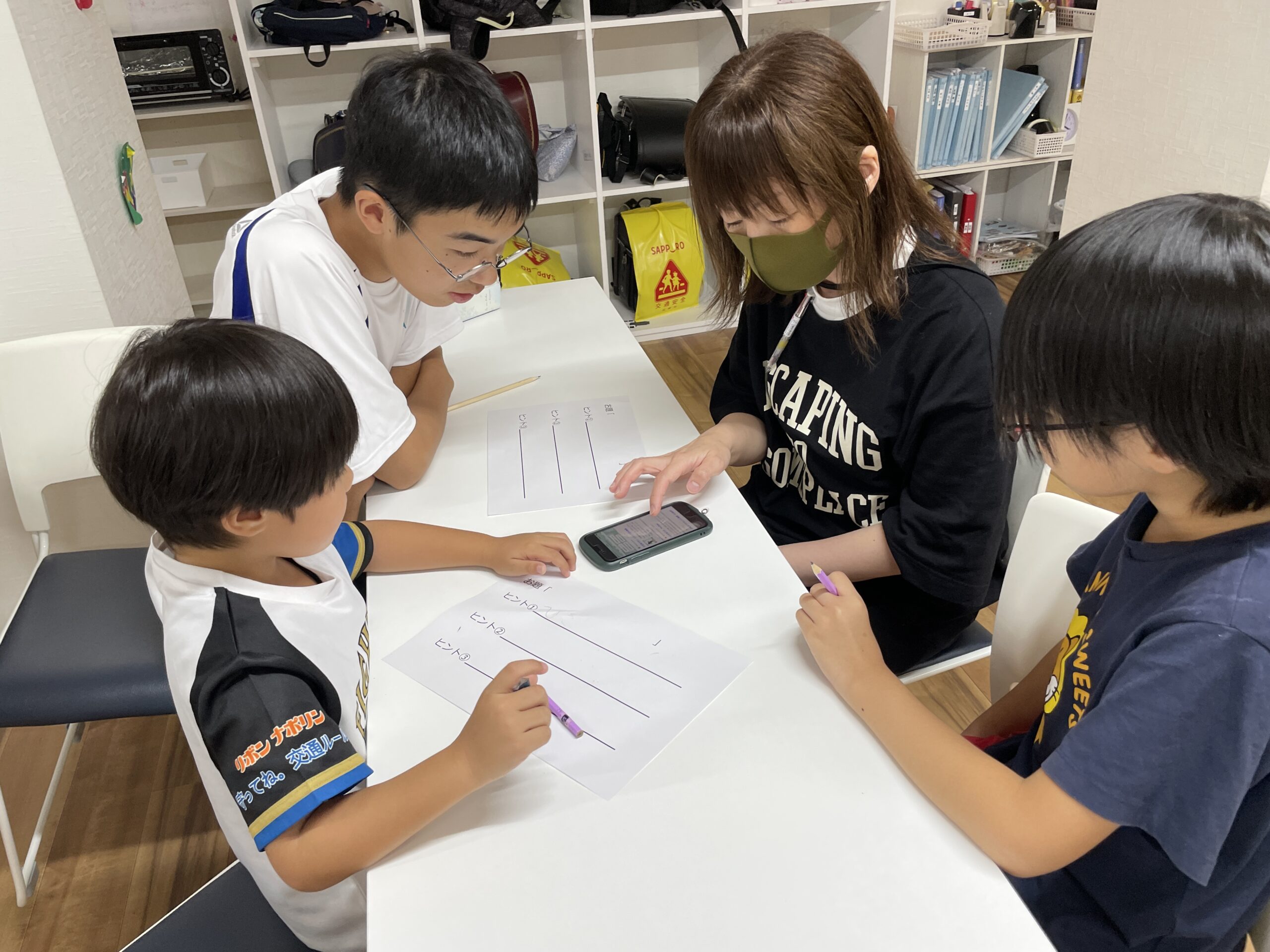 3ヒントクイズがどんなものか、わかってきたところで、子どもたちがグループに分かれてお題とヒントを考えました!