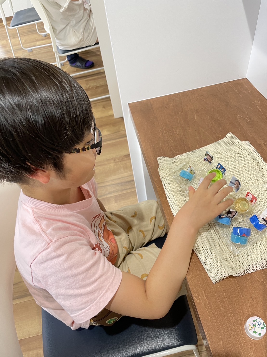 指先でつまむ、注目した場所に入れる、同じを見つける、を目標にしているお友だち。