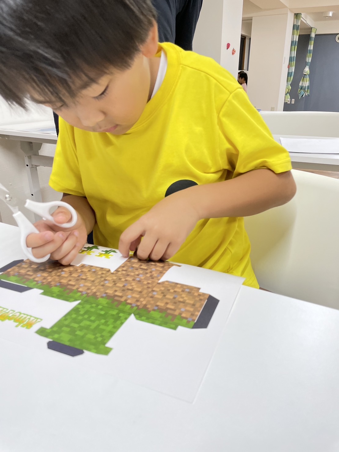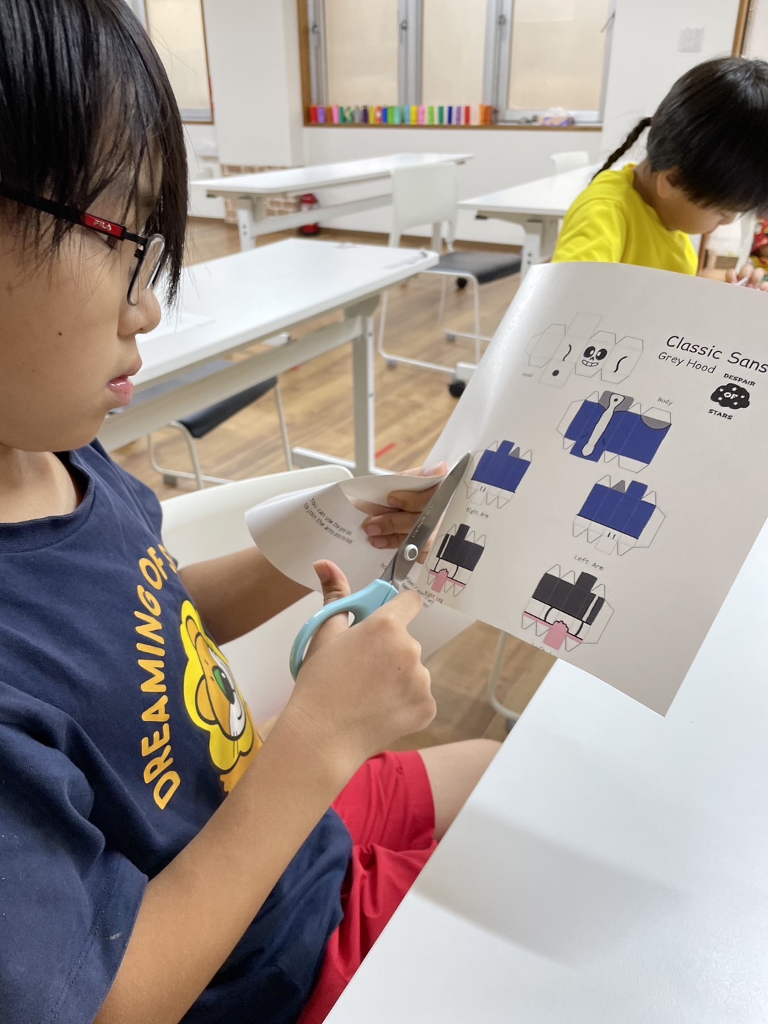 ハサミやノリを使ってのペーパークラフトのチーム。