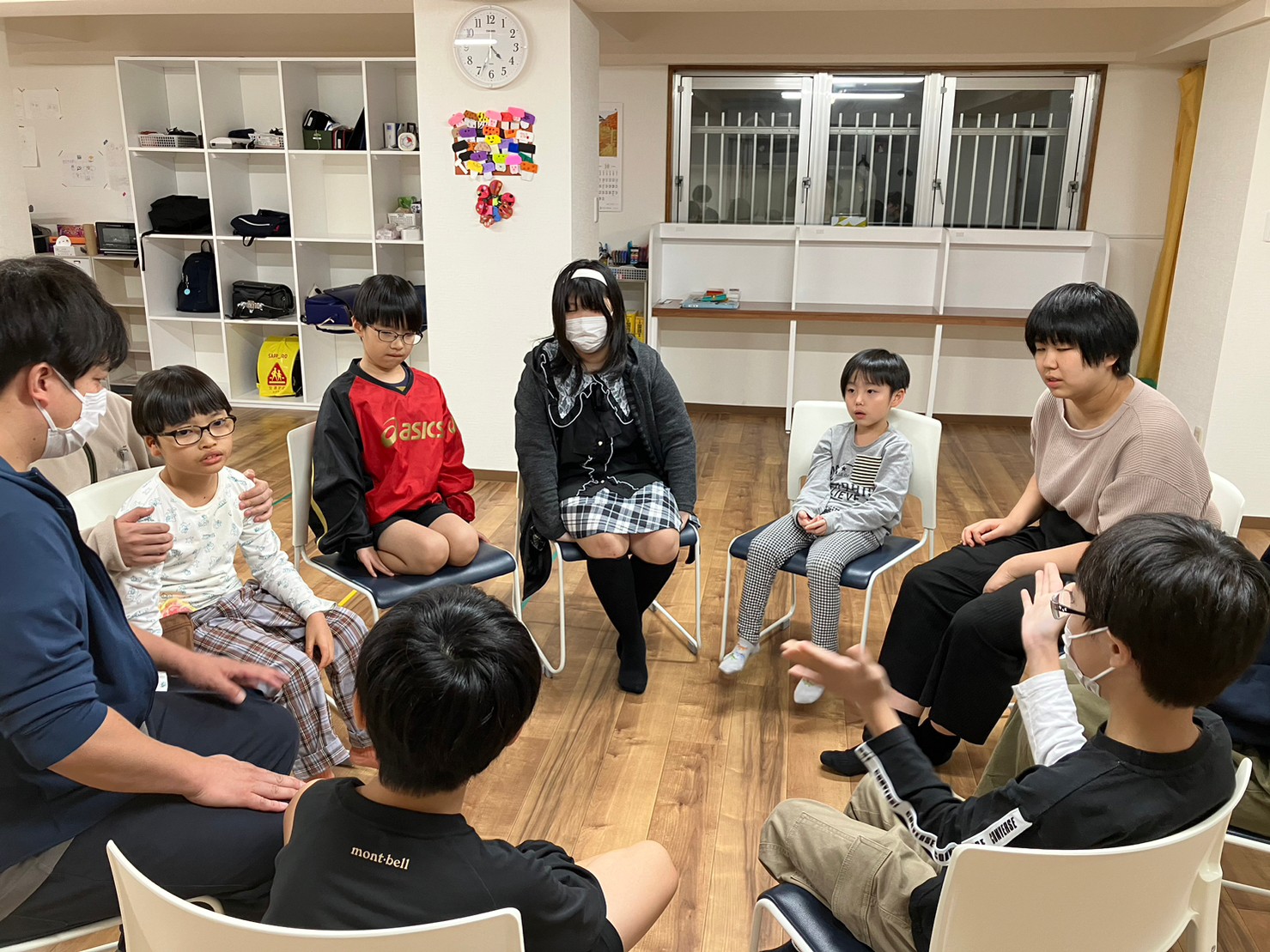 みんなで円になって座り、順番に