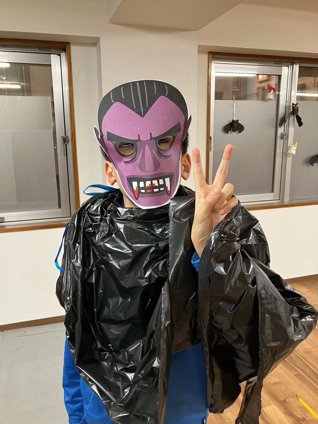 今年は長短2種類のマント、お面も好きなデザインを選んでペーパークラフトで作りました。