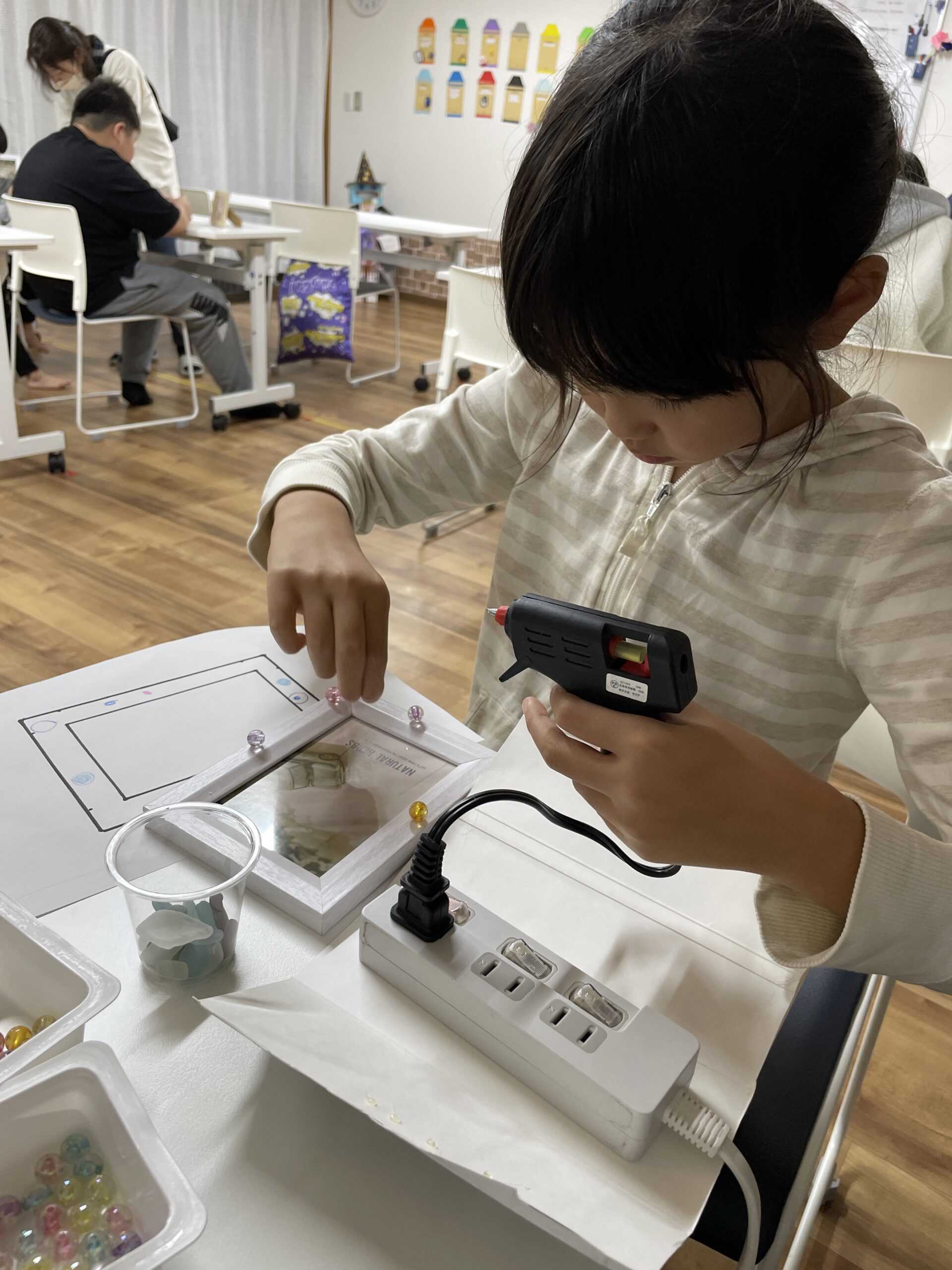 下書きを早々に書き終えて、グルーガンでつけていく子、