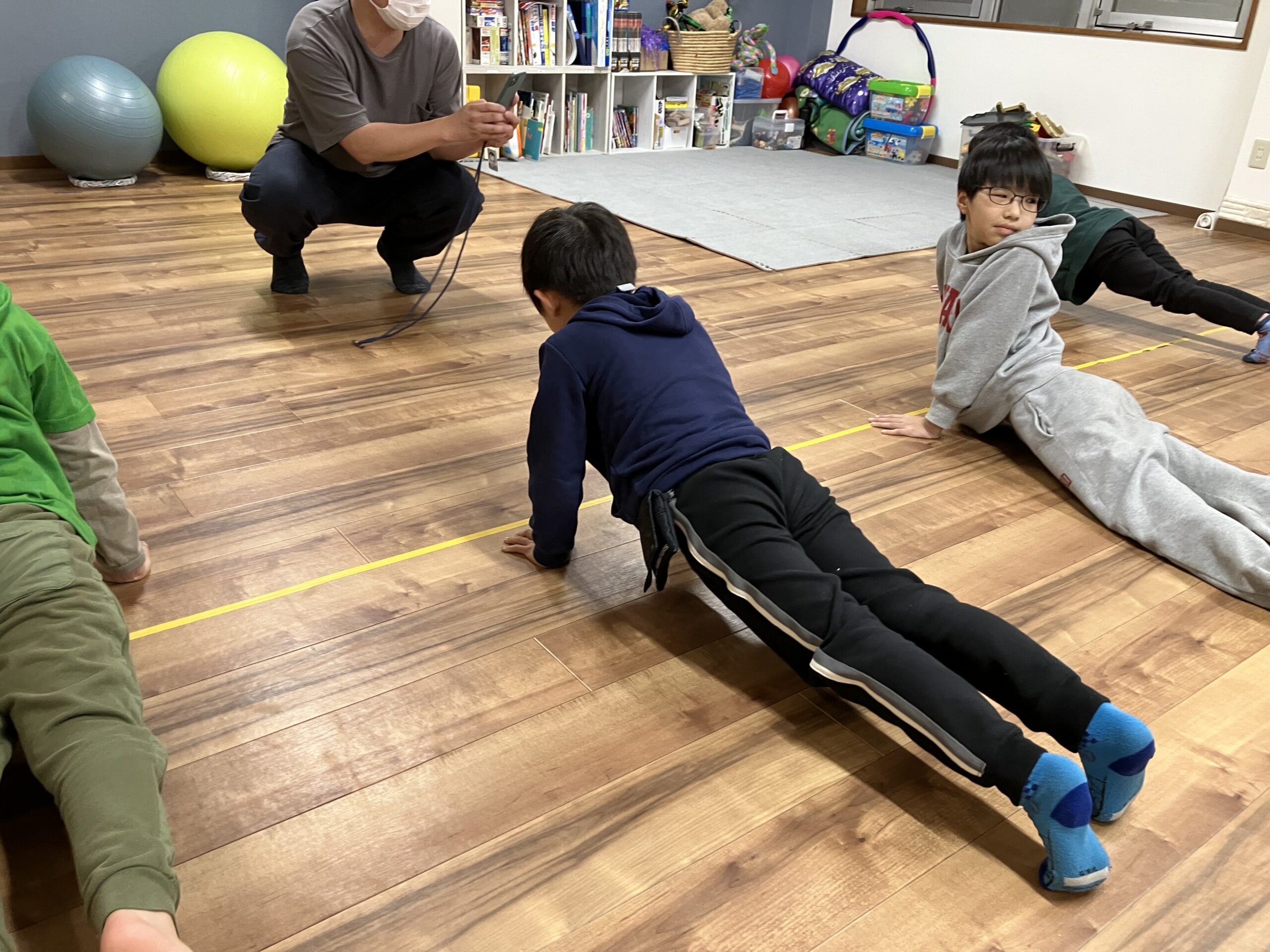 腕を使う運動がメインだったのですが、子ども達はそれぞれ出来る範囲での運動を頑張っていました💪