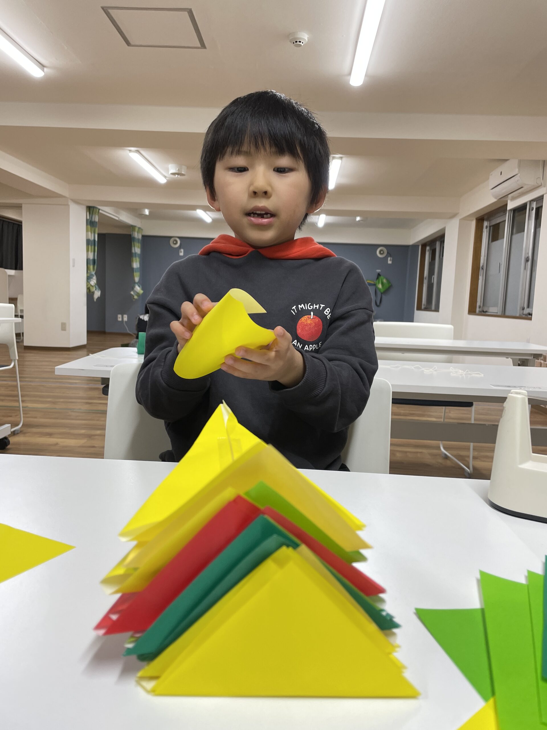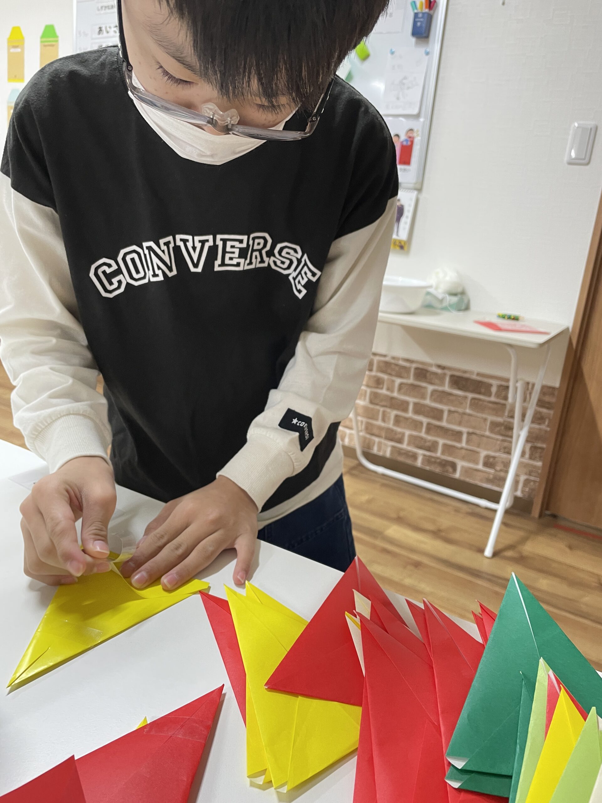 赤・緑・白・黄色とたくさん作って色合いも意識しながら並べていきました。