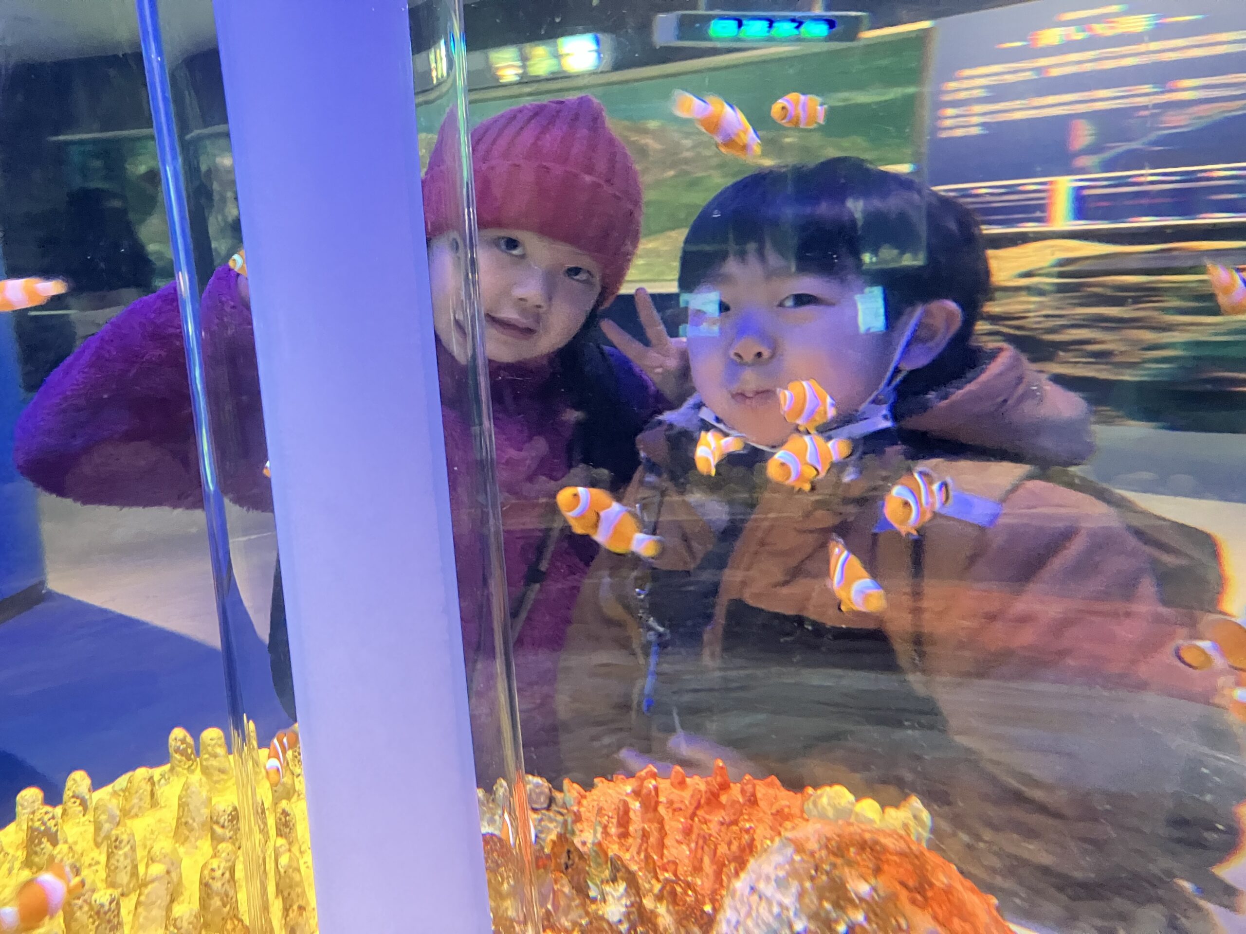 地下鉄に乗って、水族館の見学とガチャガチャを回しに行きました。