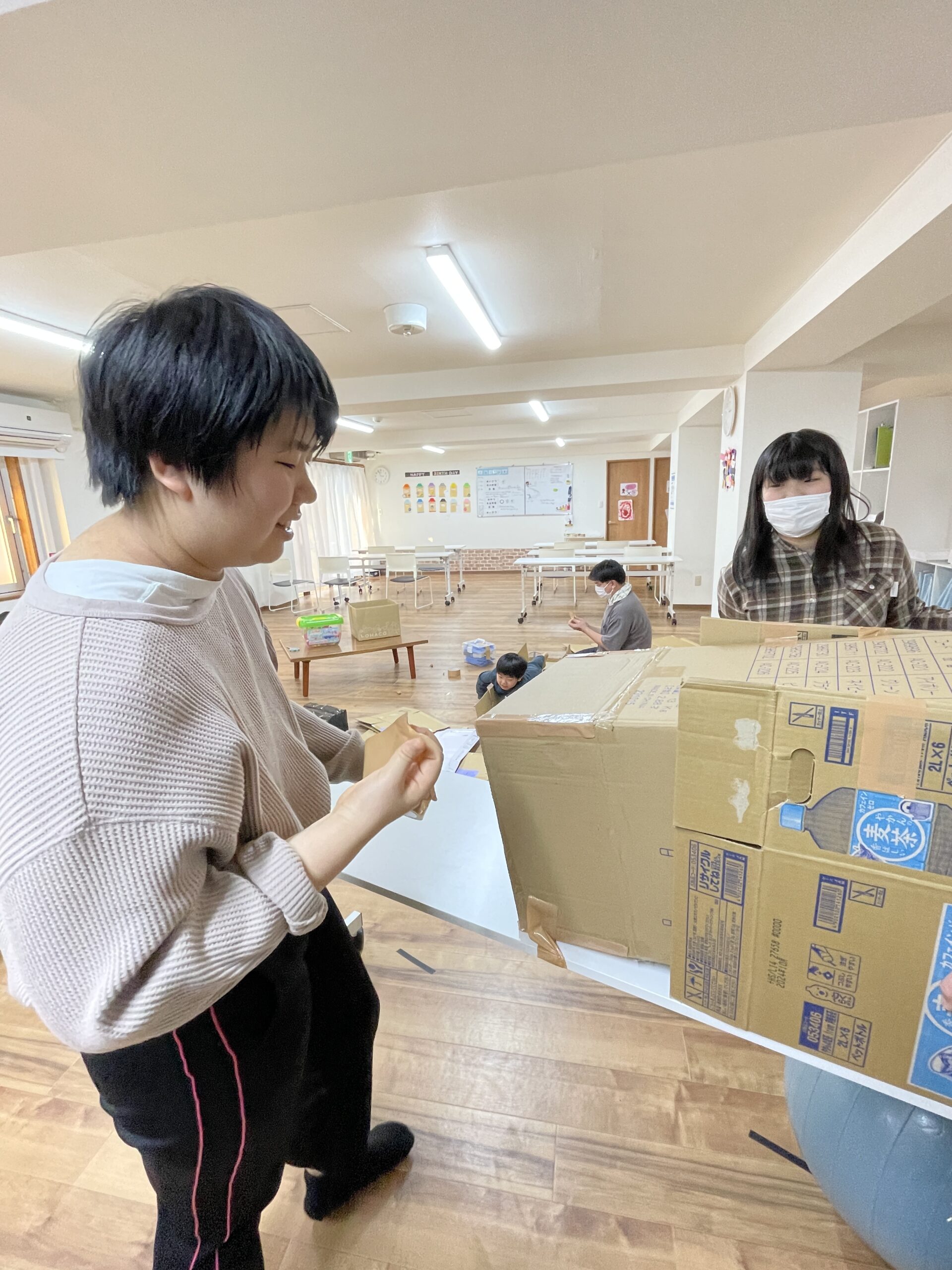 この日は段ボール工作です。