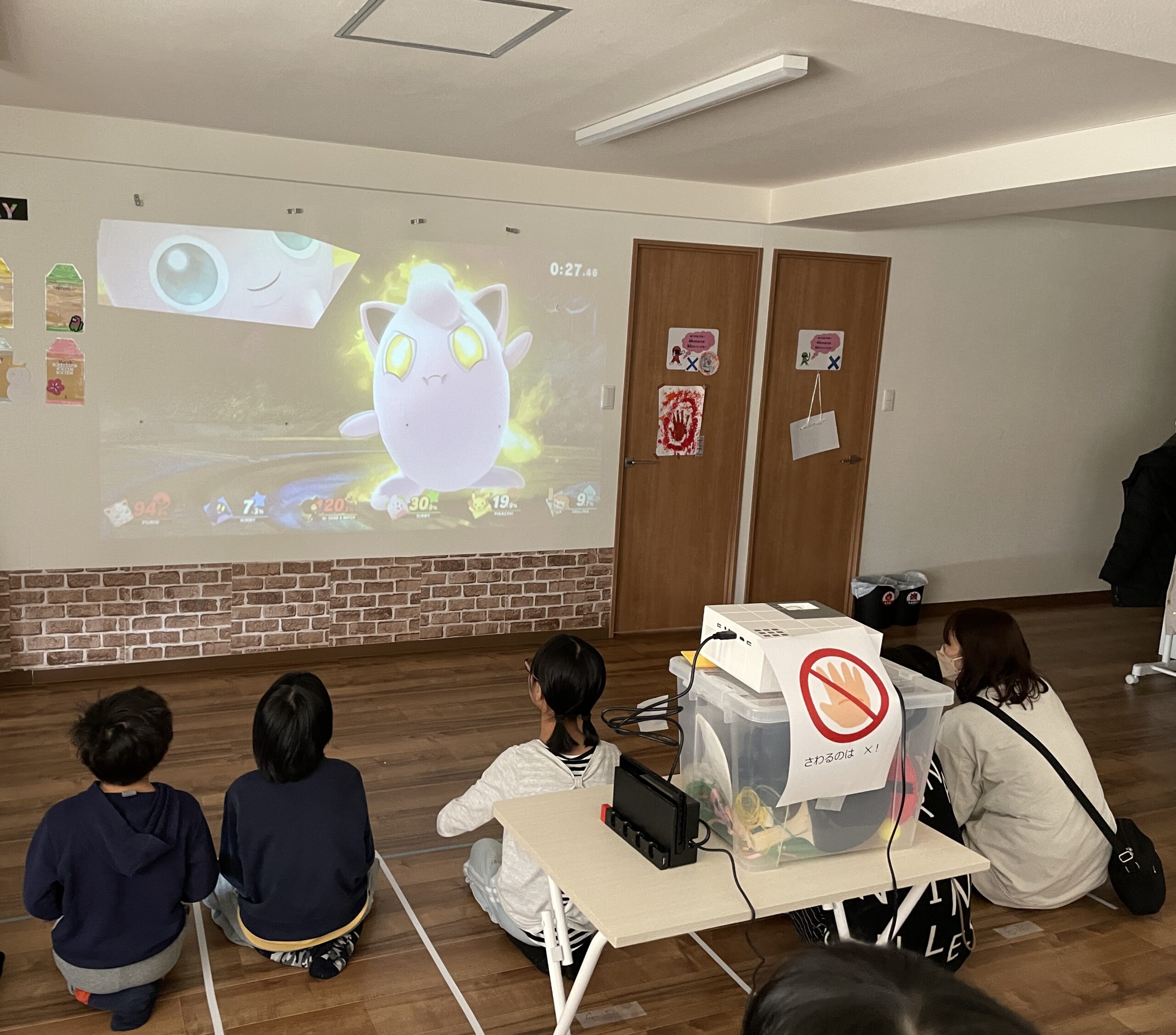 この日はたまみずきに大きなスクリーンを取り付けてゲーム大会をしました。