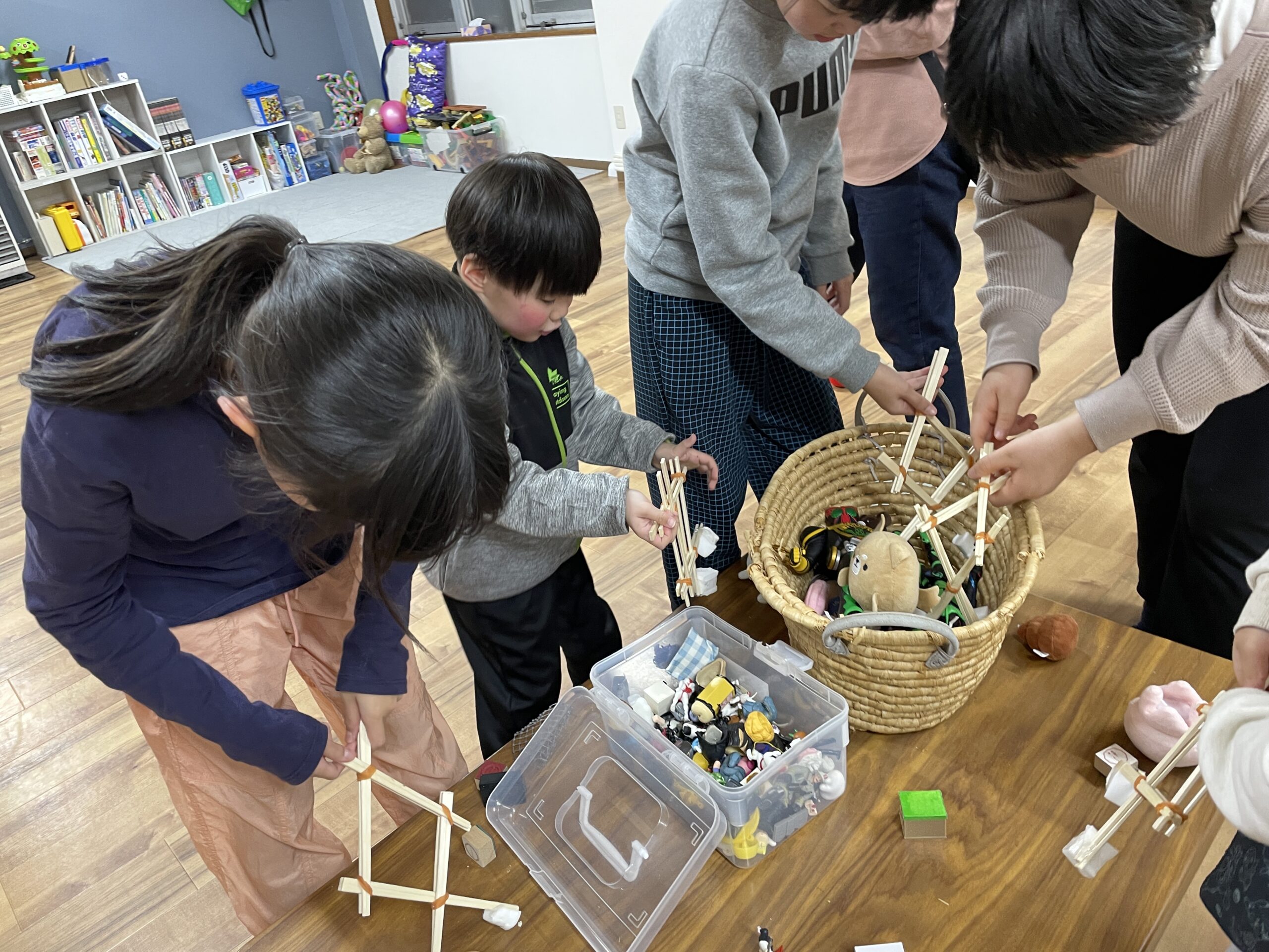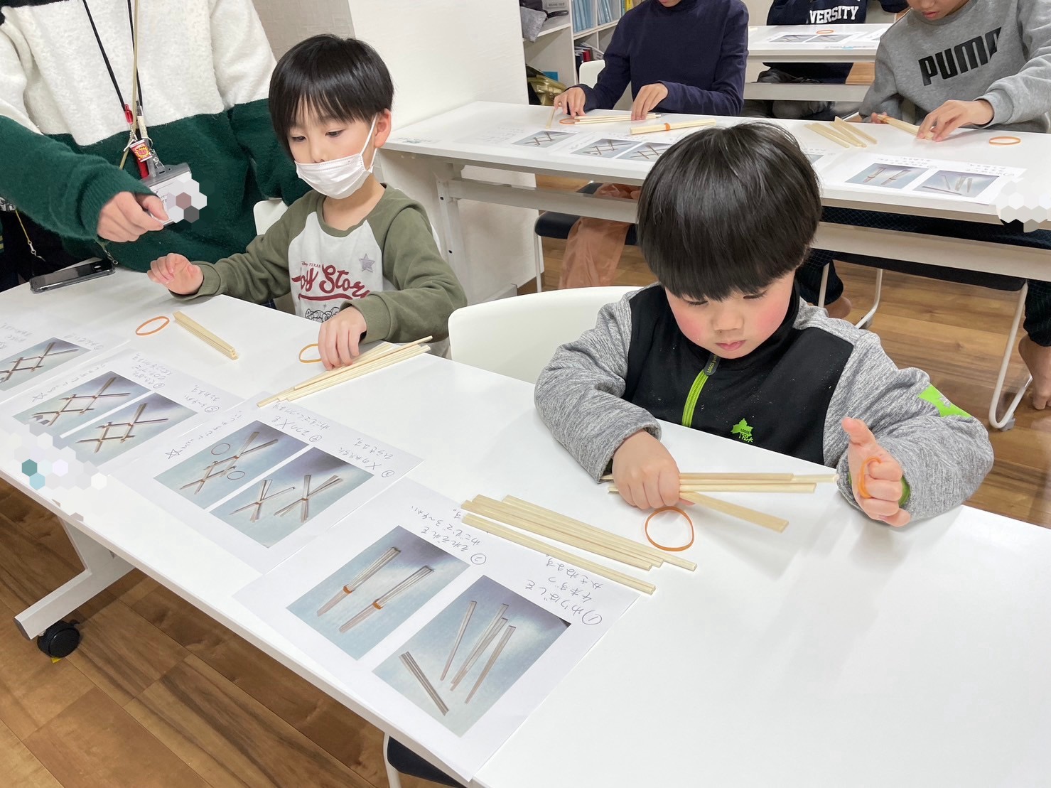 はさみやセロテープ、輪ゴムや割りばし、使い方や使う順番など、一緒に学ぶことが出来る時間です💚