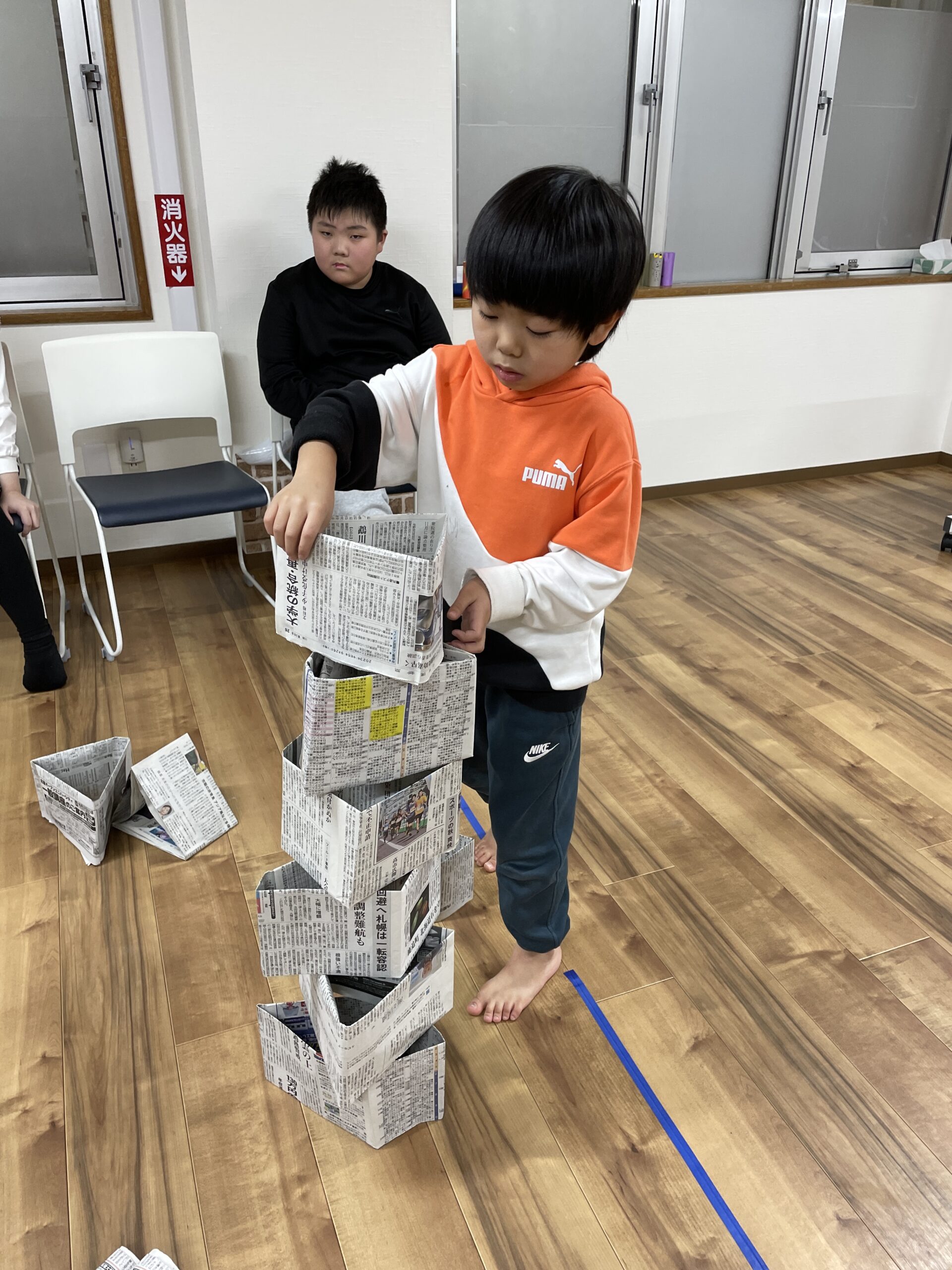 タワー競争では、それぞれのチームで協力してバランスを見ながら、取り組んでいました😀