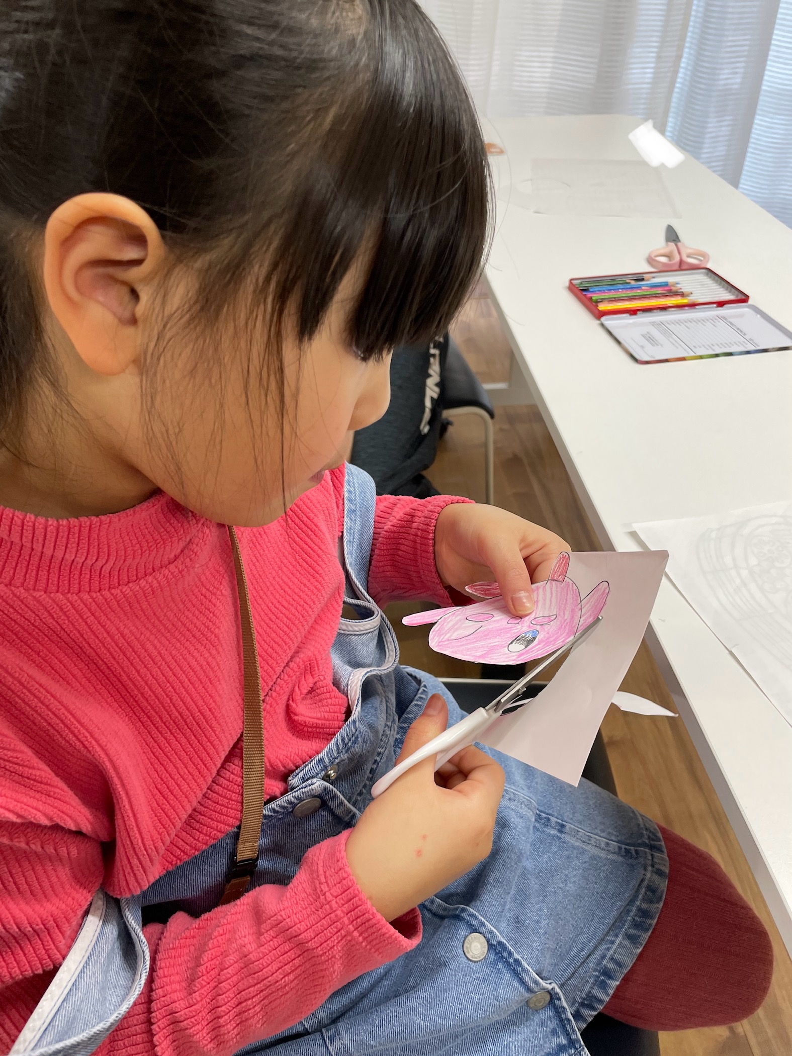 今日は厚紙に鉛筆で下描きをして、イメージを膨らませやすくする為に、色鉛筆で色を塗っていきました。