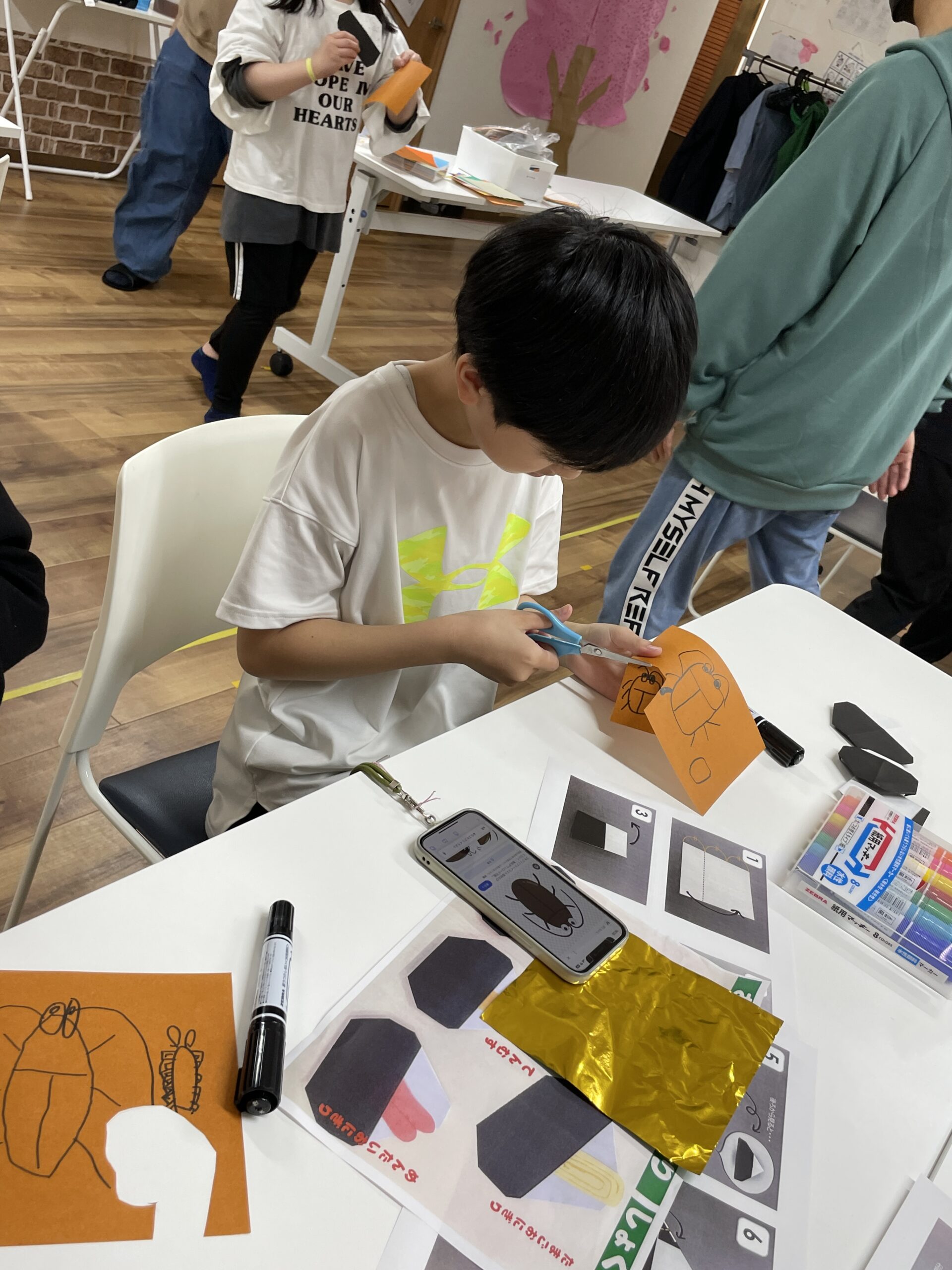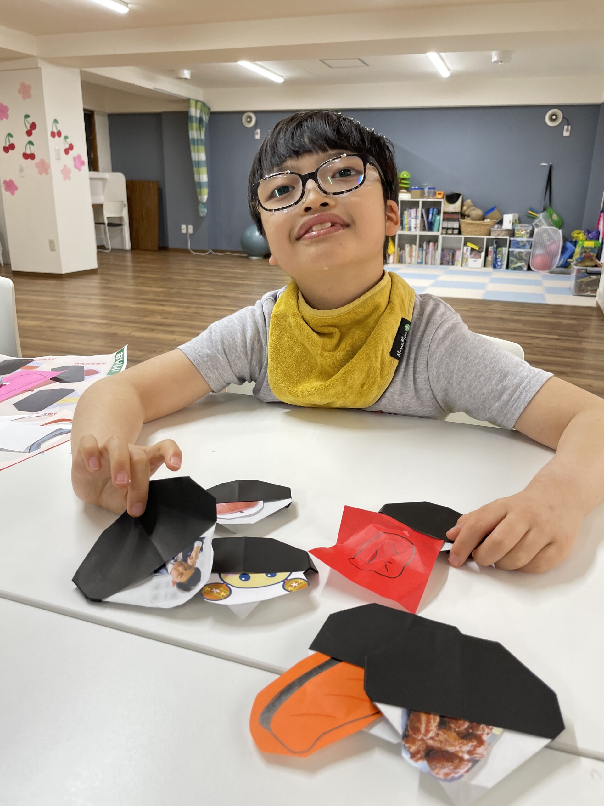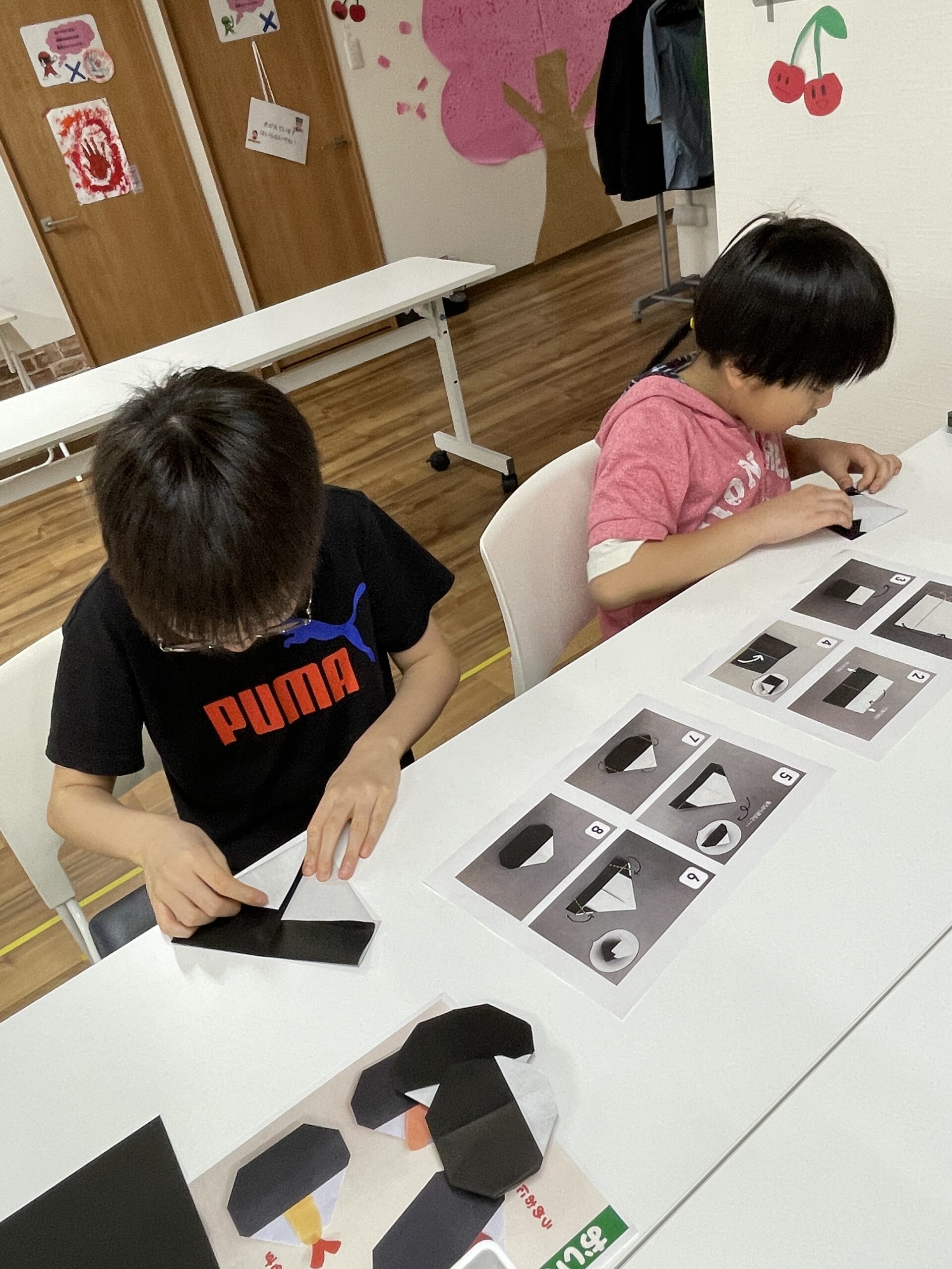 それぞれ好きな具を折り紙に描いて切り取ります。
