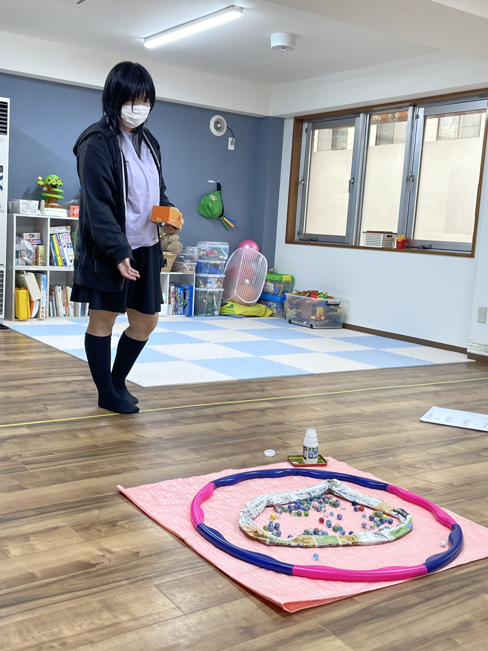 姿勢を低くしてみたり、ビー玉の投げる角度を気にしながら挑戦していました!!