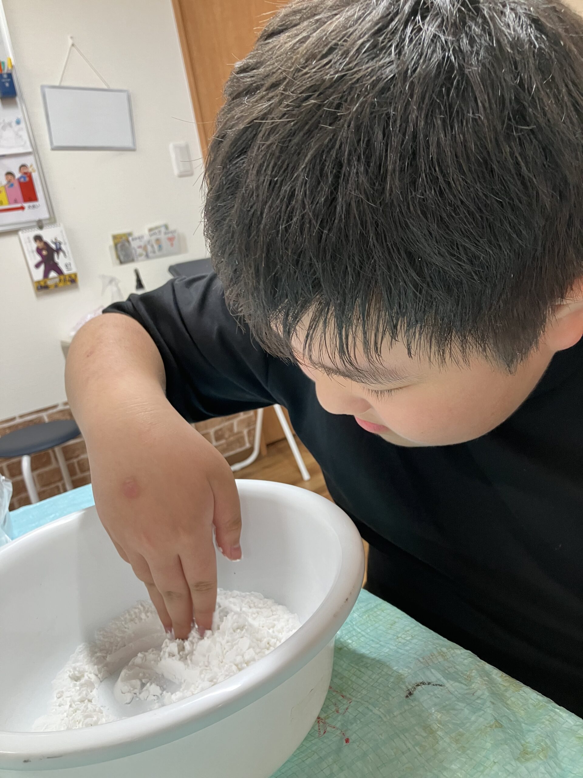 水を後から足していくことで、どのように感触が変化するか楽しむことができます!