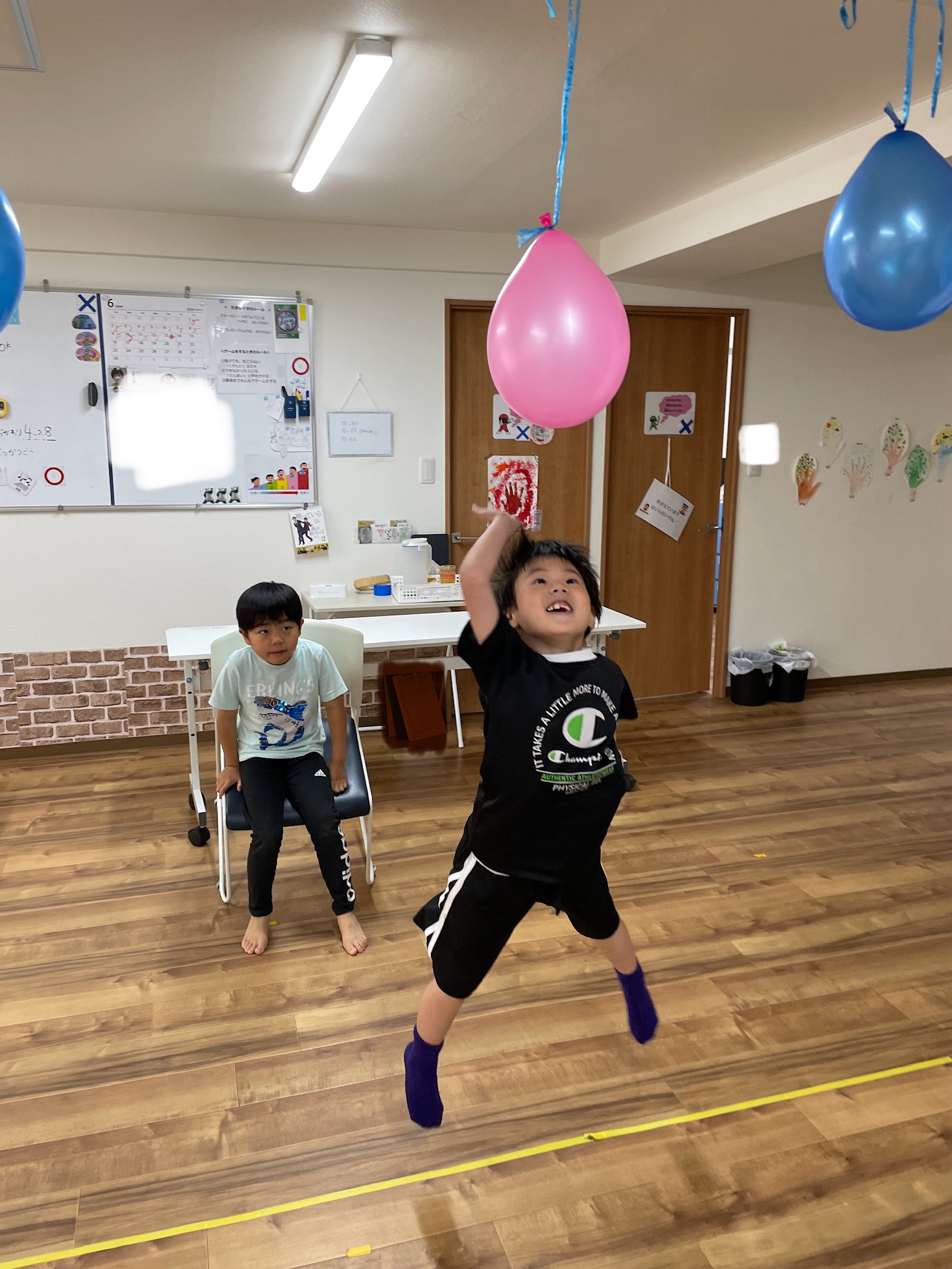 風船を使い粗大運動をメインに体を大きく使った運動をした子