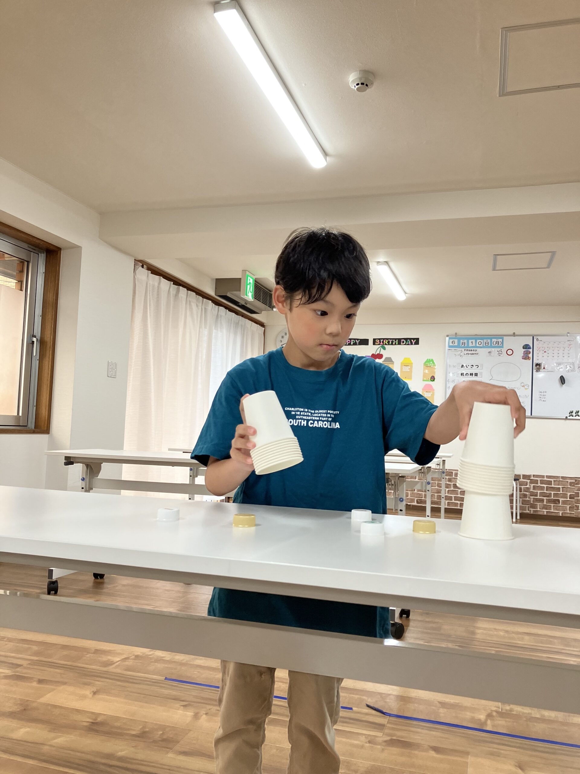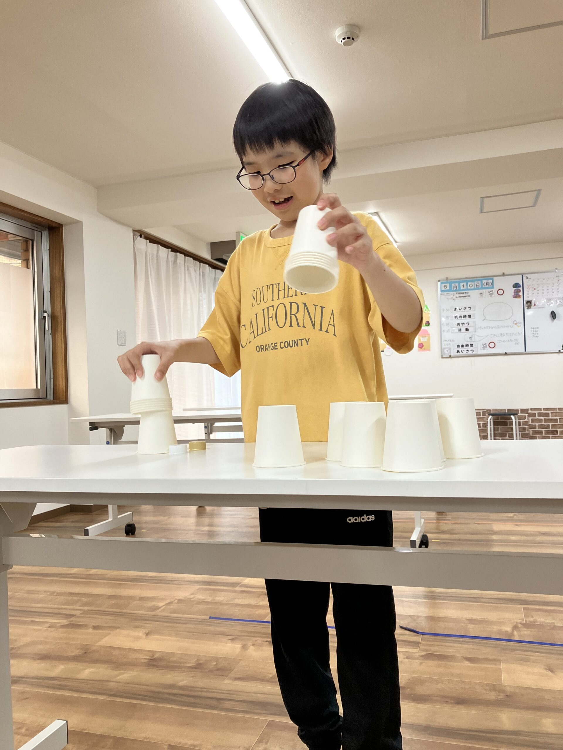 開けたコップは、次々と重ねていきますが、一番下にくるコップを最初に開けるのも忘れずに行います!