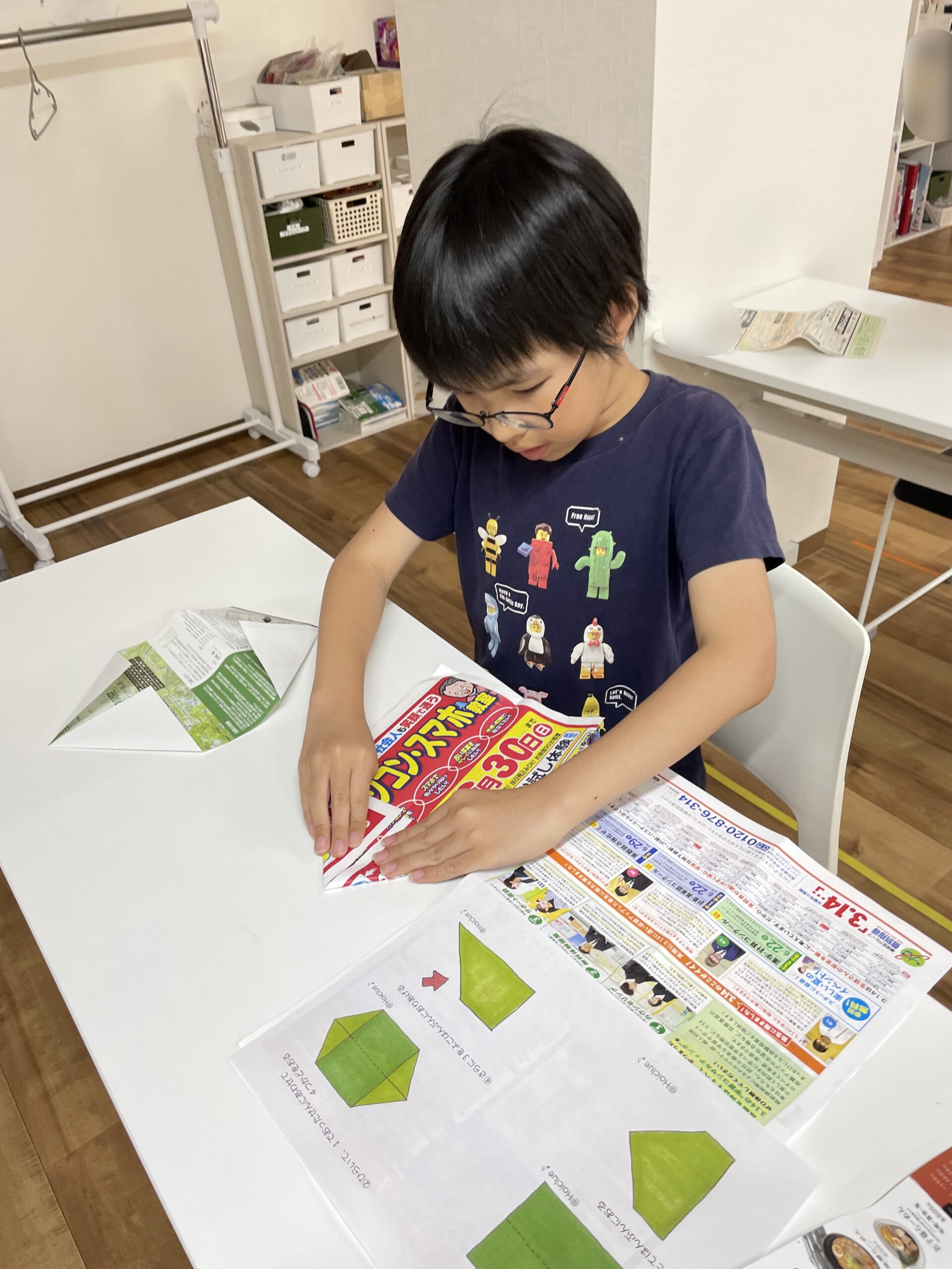 今日は正方形の折り紙ではなくチラシなので、多少ズレても問題ないですが^^