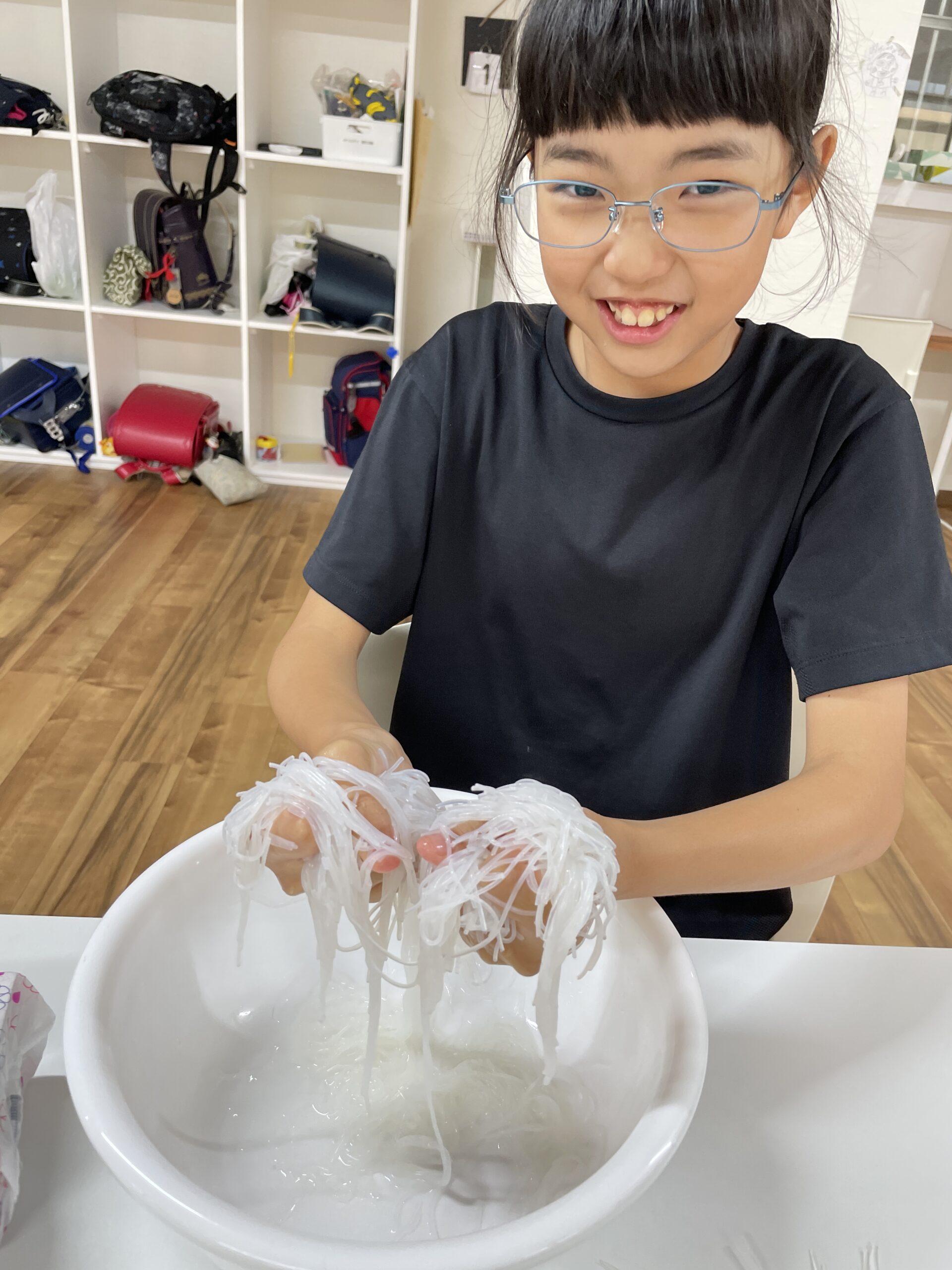 それから今度は戻した状態の春雨を実際に触れてみて感触を楽しんでいきました。