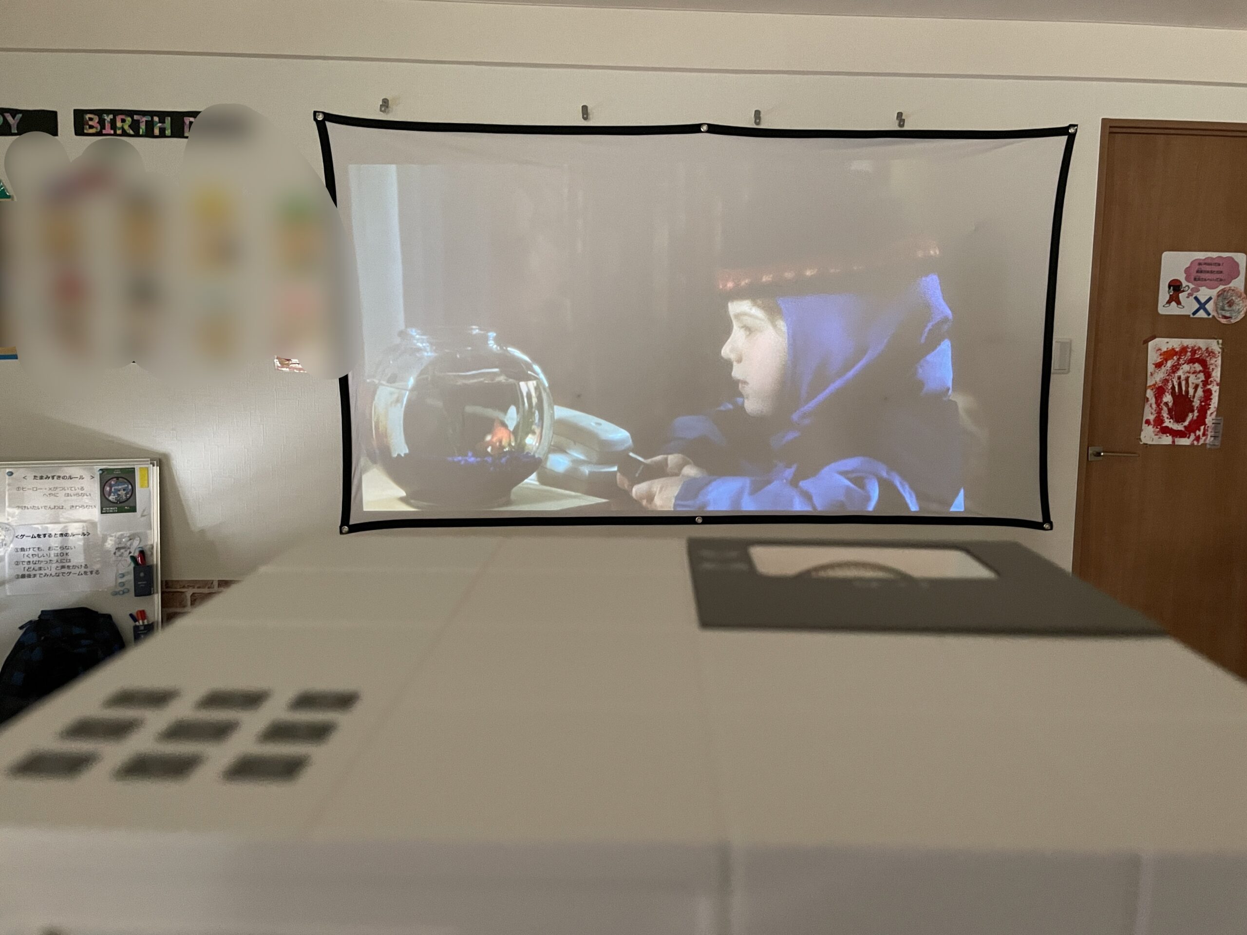 プロジェクターから映した大きな映像で観る映画は、お家で観るのとは雰囲気が違ってドキドキします🎶