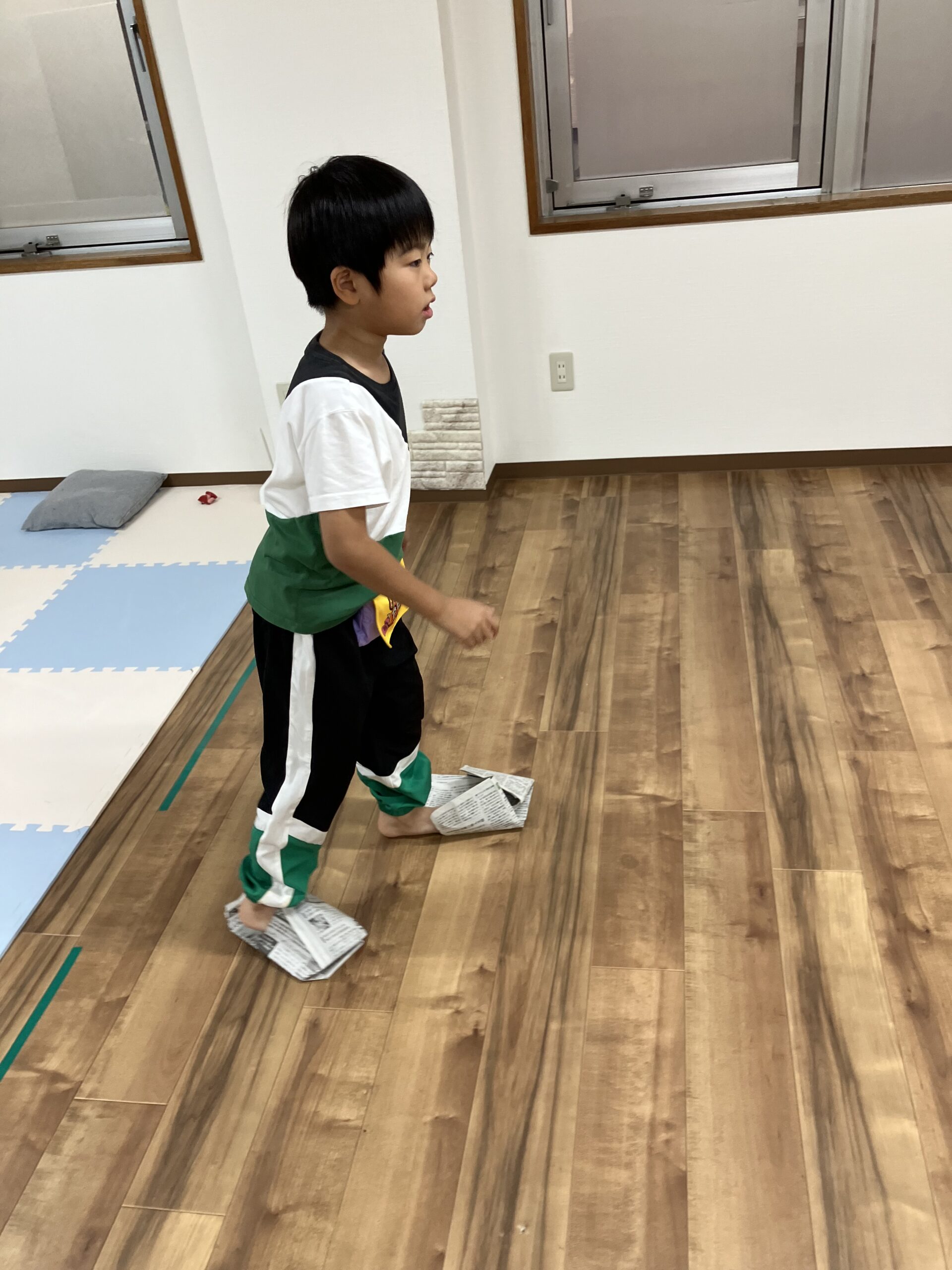 簡易的な対処法かもしれませんが、新聞紙1枚あれば作れるスリッパを折っていきました。