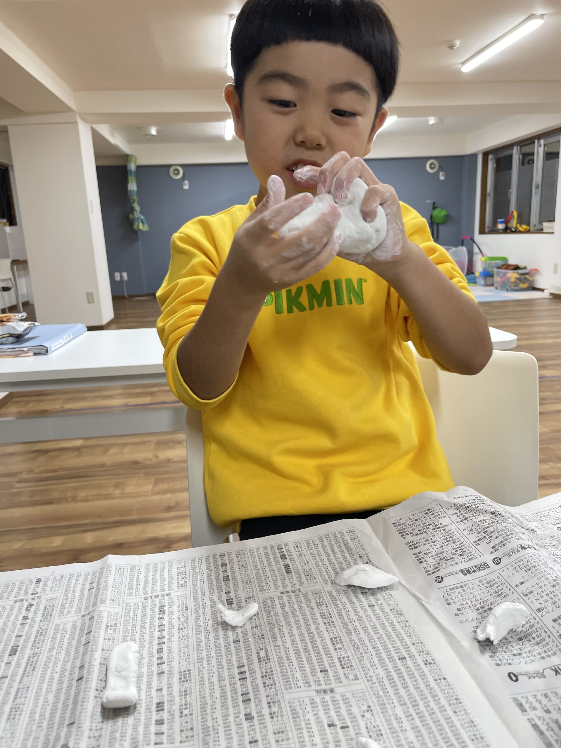 普通の粘土とは違う感触や、水を付けたときの変化を体験していきます!!