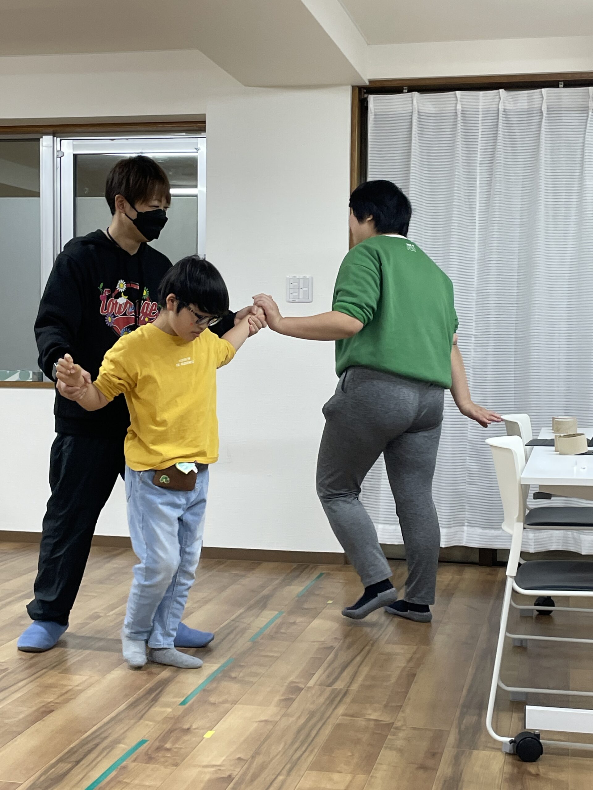 音楽に合わせてダンスをして、身体を動かしていったり