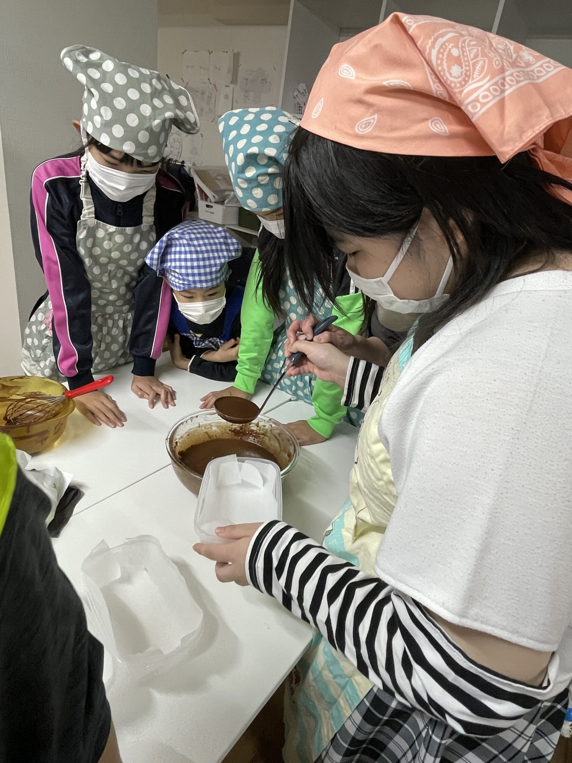 今日は『おやつ作り』で「春巻きの皮のピザ」と「簡単ガトーショコラ」を作りました。