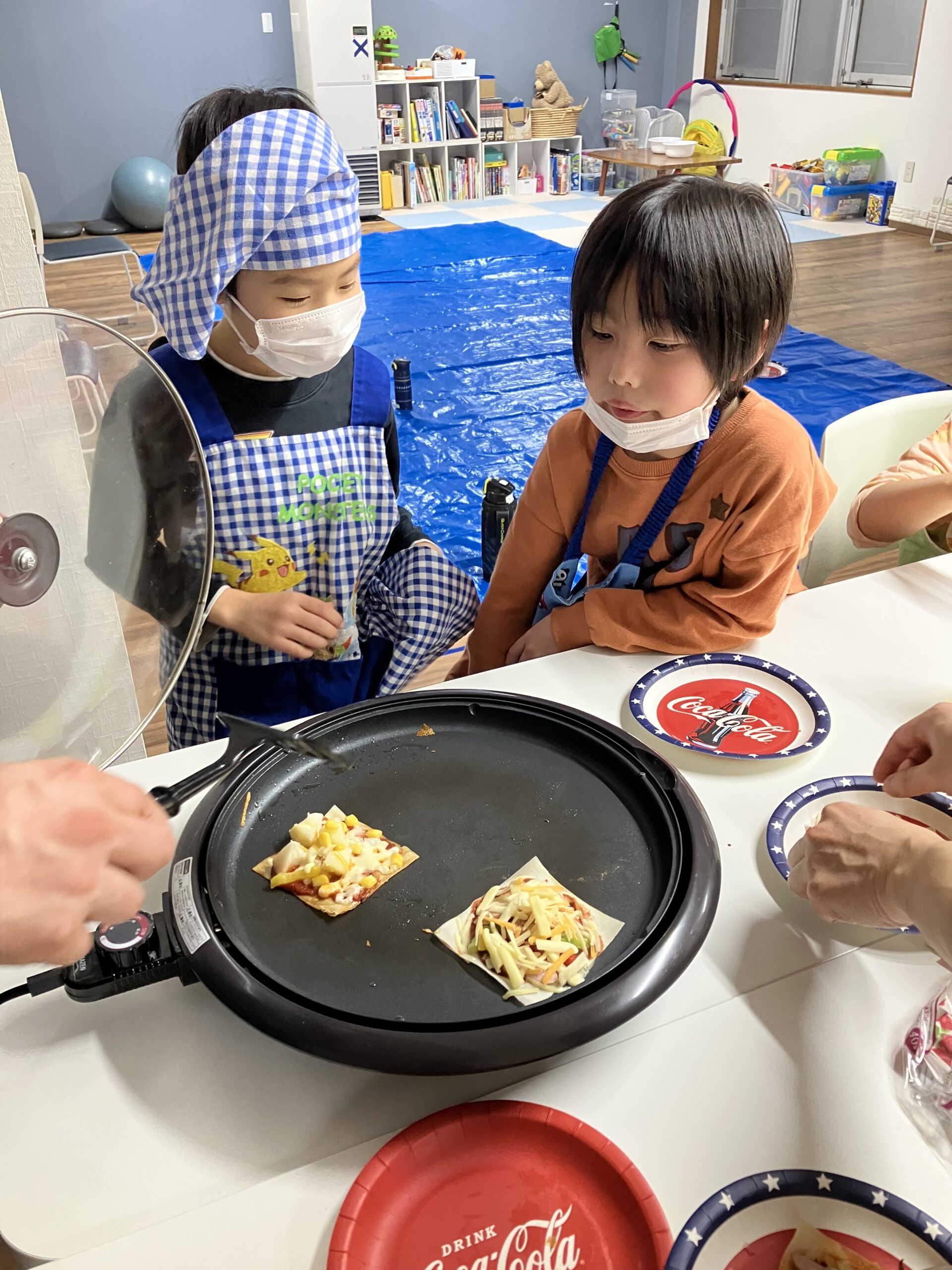 思い思いのトッピングを自分で乗せて具材が無くなる程にみんなよく食べました!
