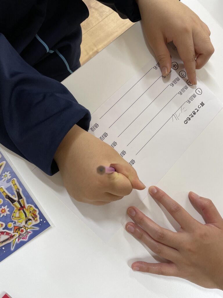 たまみずきに戻ってきてからは、おこづかい帳の練習も兼ねて、買ってきたものと金額を紙に書いていきました。