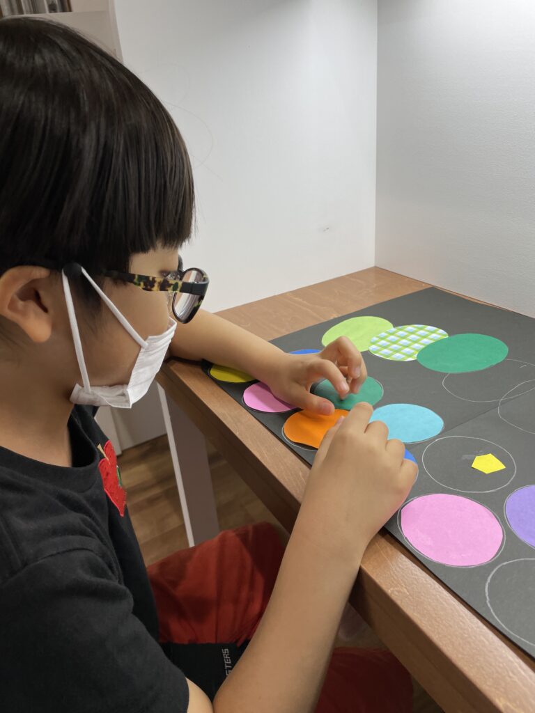個別に子どものレベルに合わせて、色の名前と色のマッチングをさせていく子と、