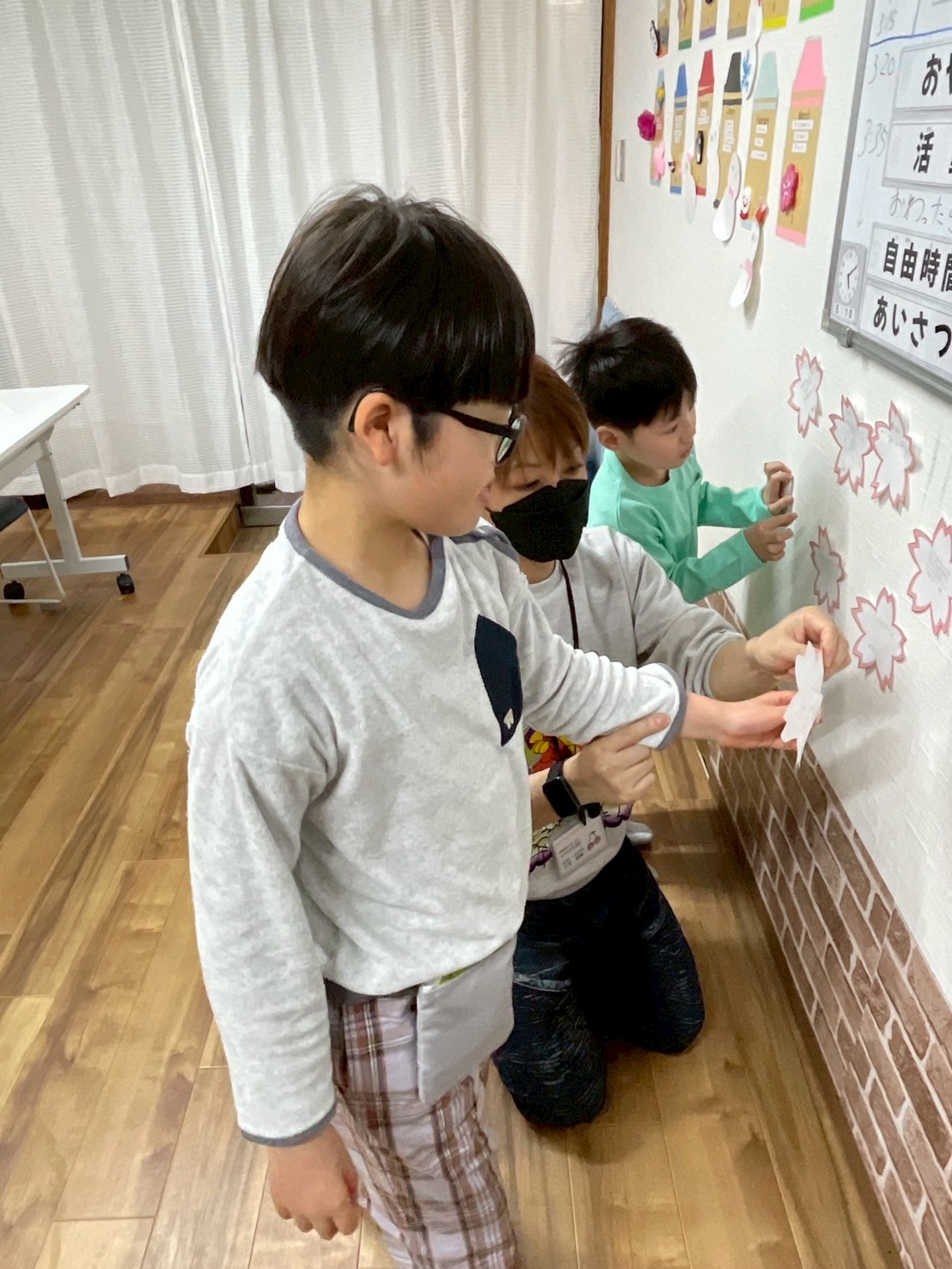 この日は、桜の花型に紙を切って、今年頑張りたいことを書いてもらいました🌸
