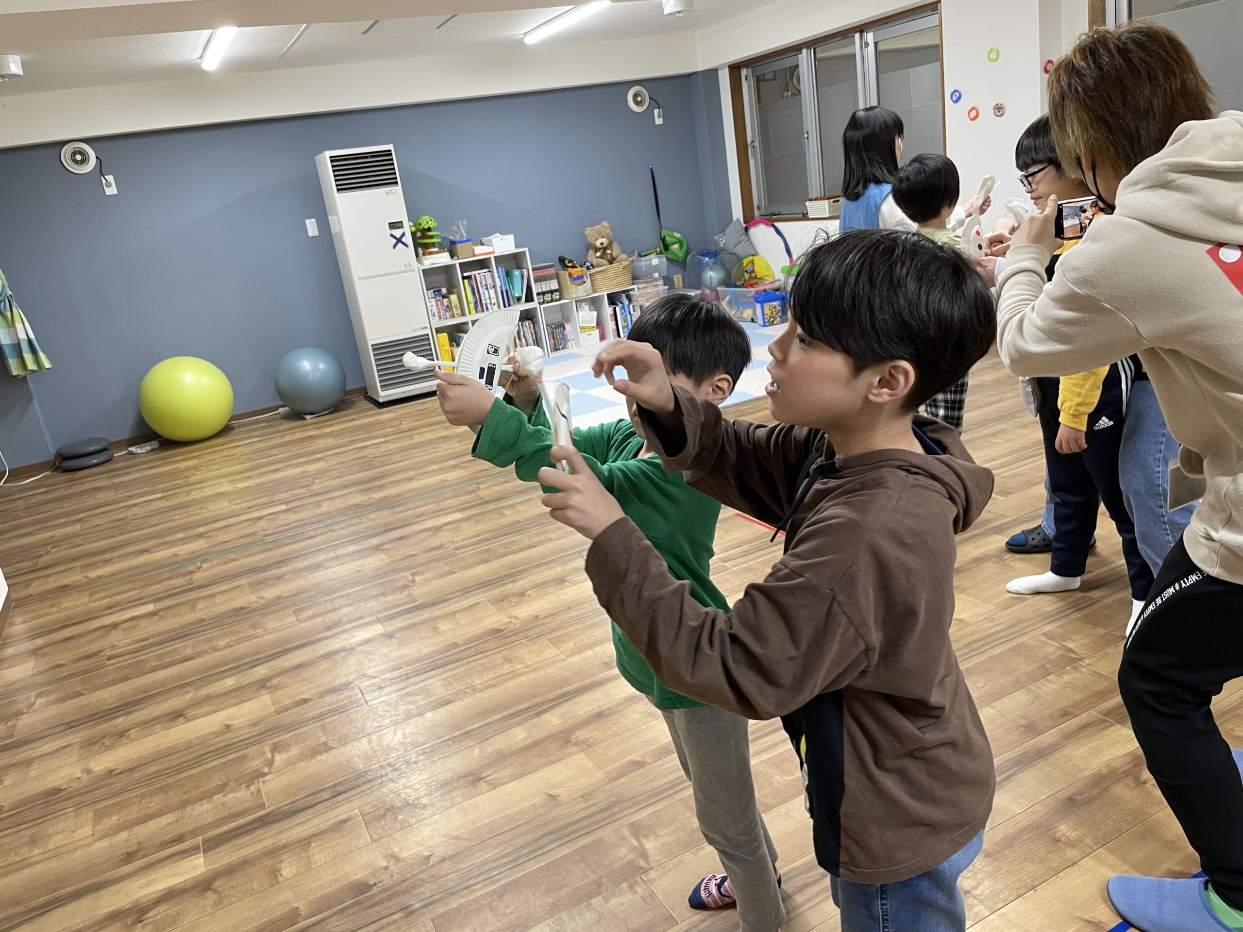 引っ張る力の加減によって飛んでいく距離が違うので、いろいろ試しながら飛ばしました!