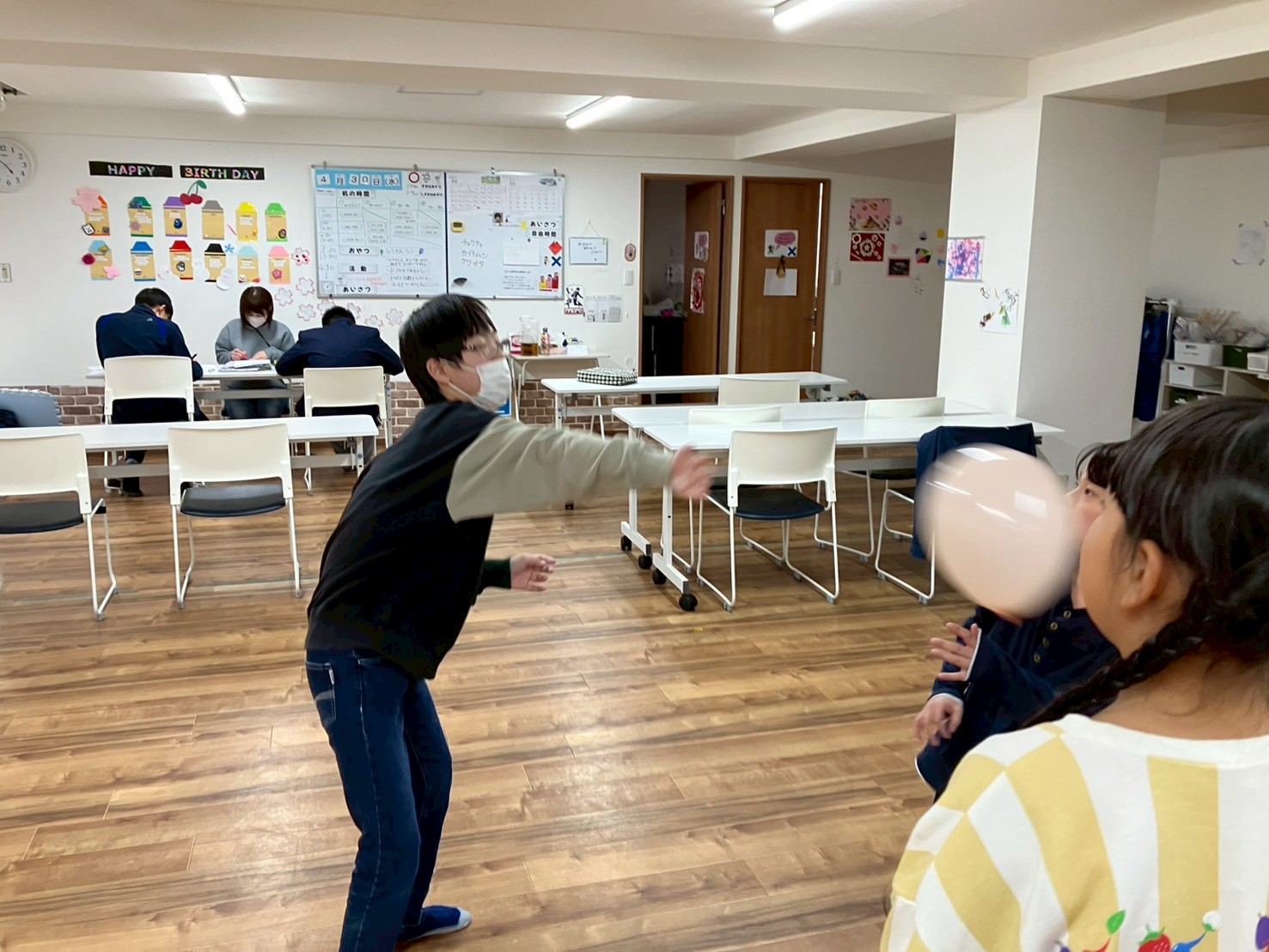 4月最終日は、みんなで風船バレーをしました!